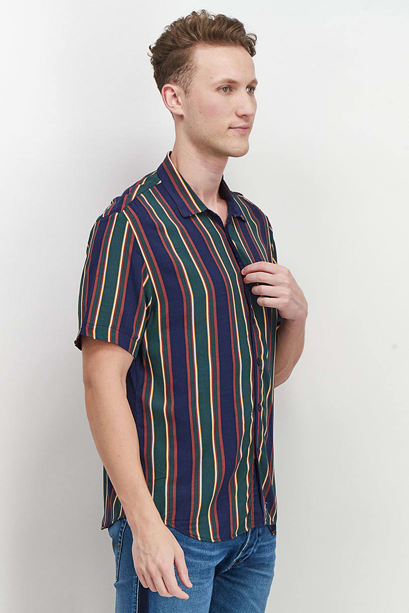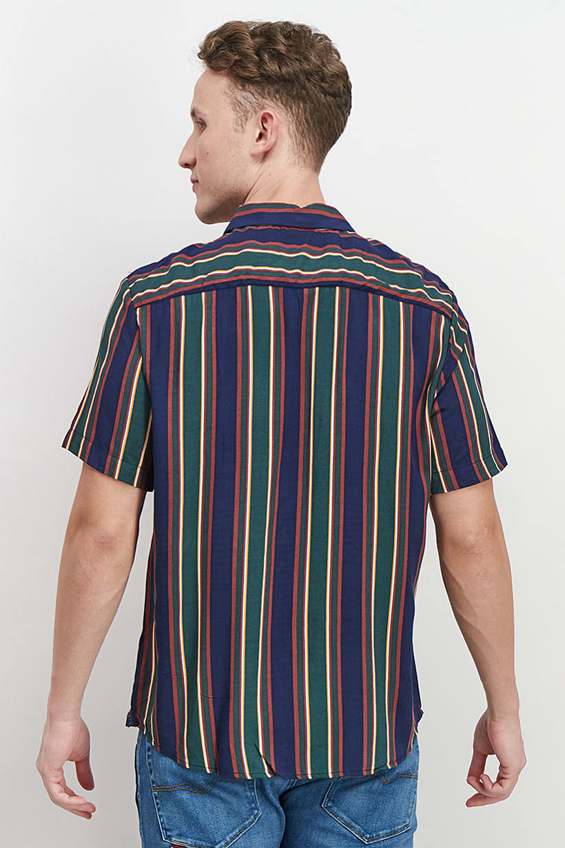 | nameOriginal | Men Regular Fit Short Sleeve Stripe Casual Shirts, Navy and Green and Red Combo |