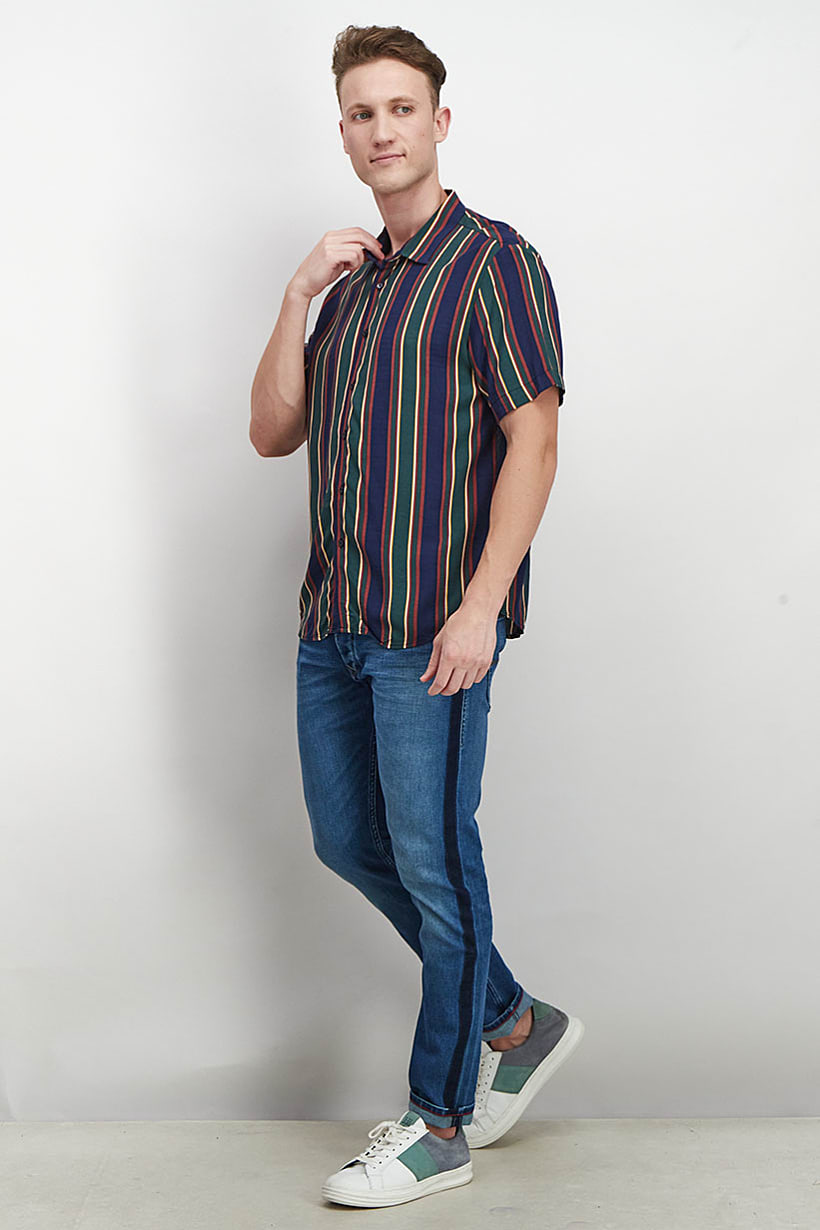 | sub_Categories | Men Clothing, Casual Shirts, men regular fit short sleeve stripe casual shirts navy and green and red combo |