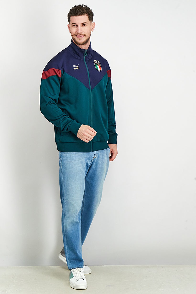 Navy/Green FIGC Iconic MCS Track Jacket with Long Sleeves for Men in Regular Fit.
