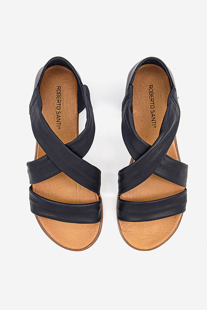 Women Slip On Leather Sandal, Navy