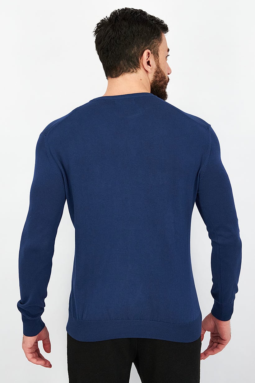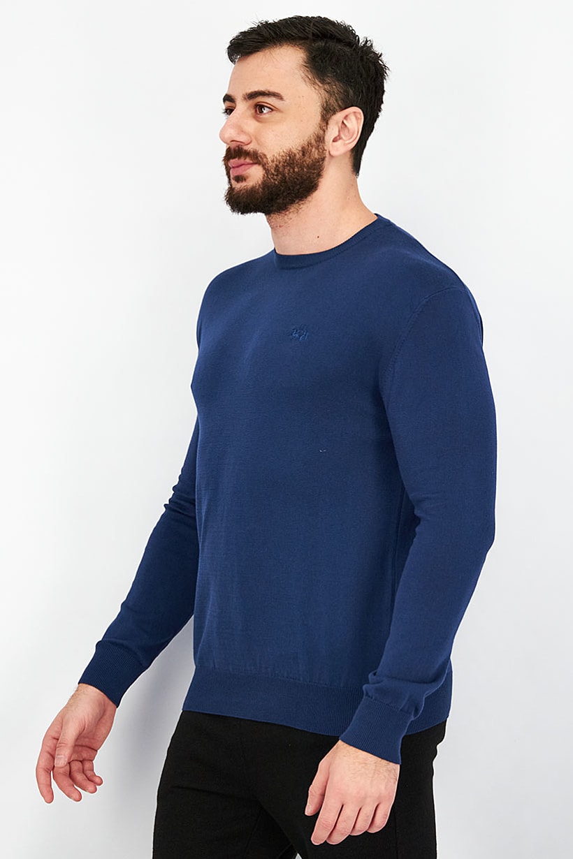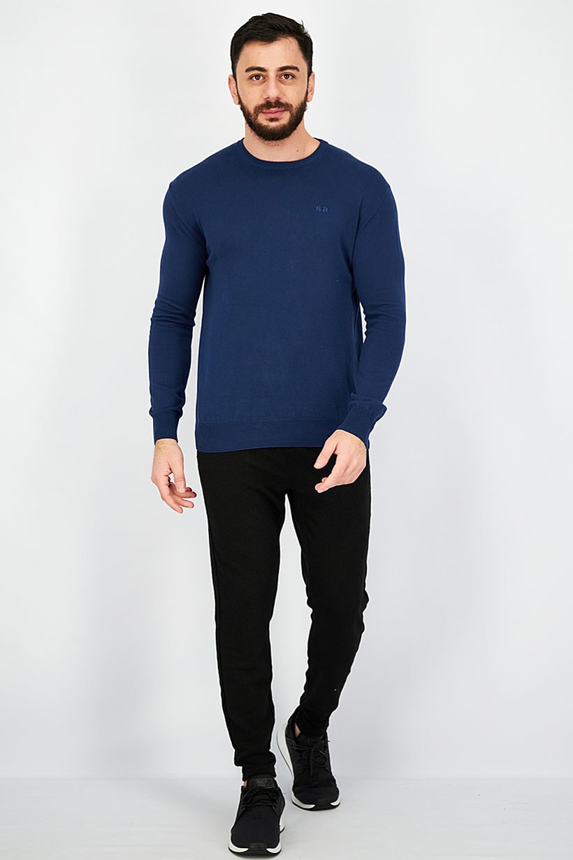 This product features a navy blue sweatshirt style pullover with a crew neckline and long sleeves made of 100% cotton. The embroidered logo adds a touch of style to this casual piece, perfect for men to wear on any occasion. The pullover closure and light thickness make it easy to wear and comfortable. Please note that the product color may vary slightly due to lighting or monitor settings.