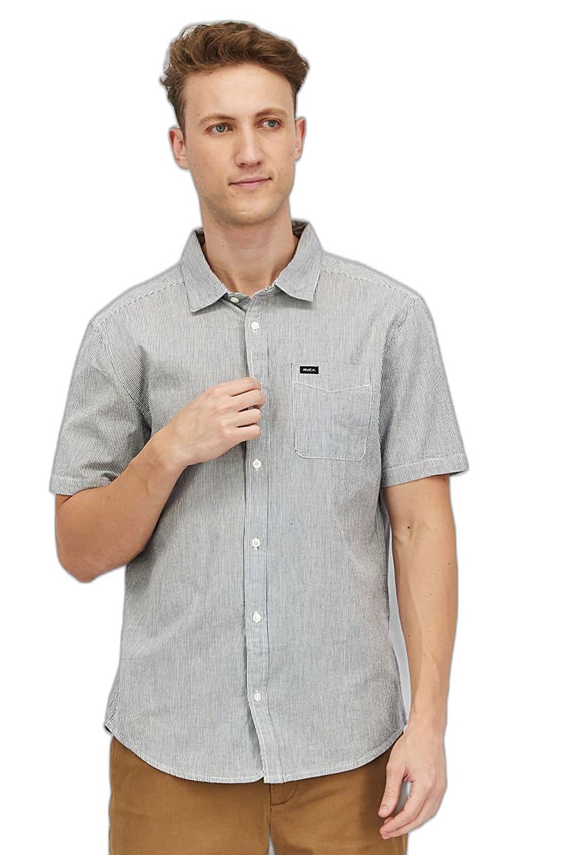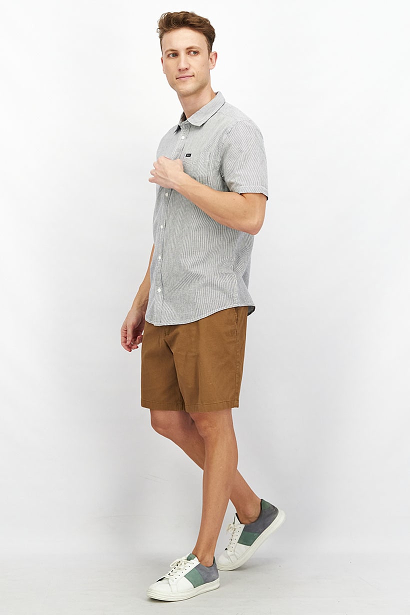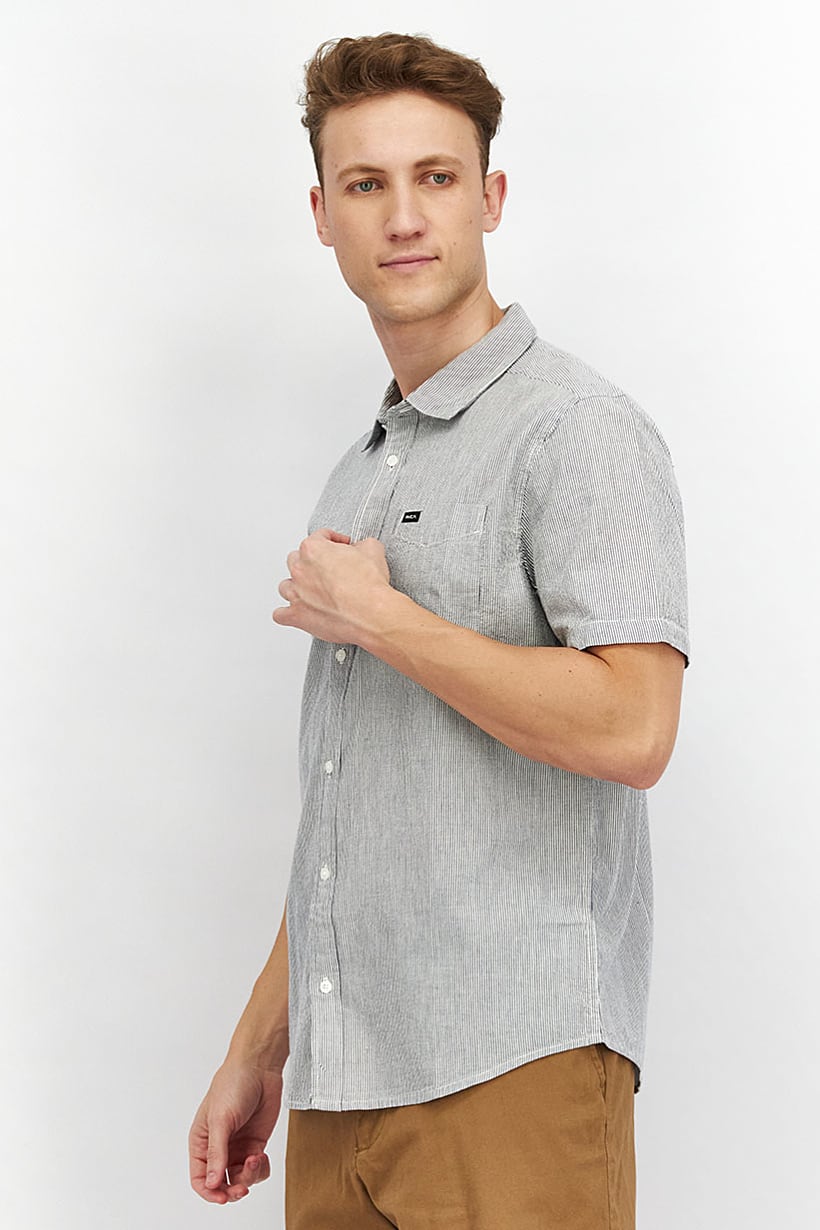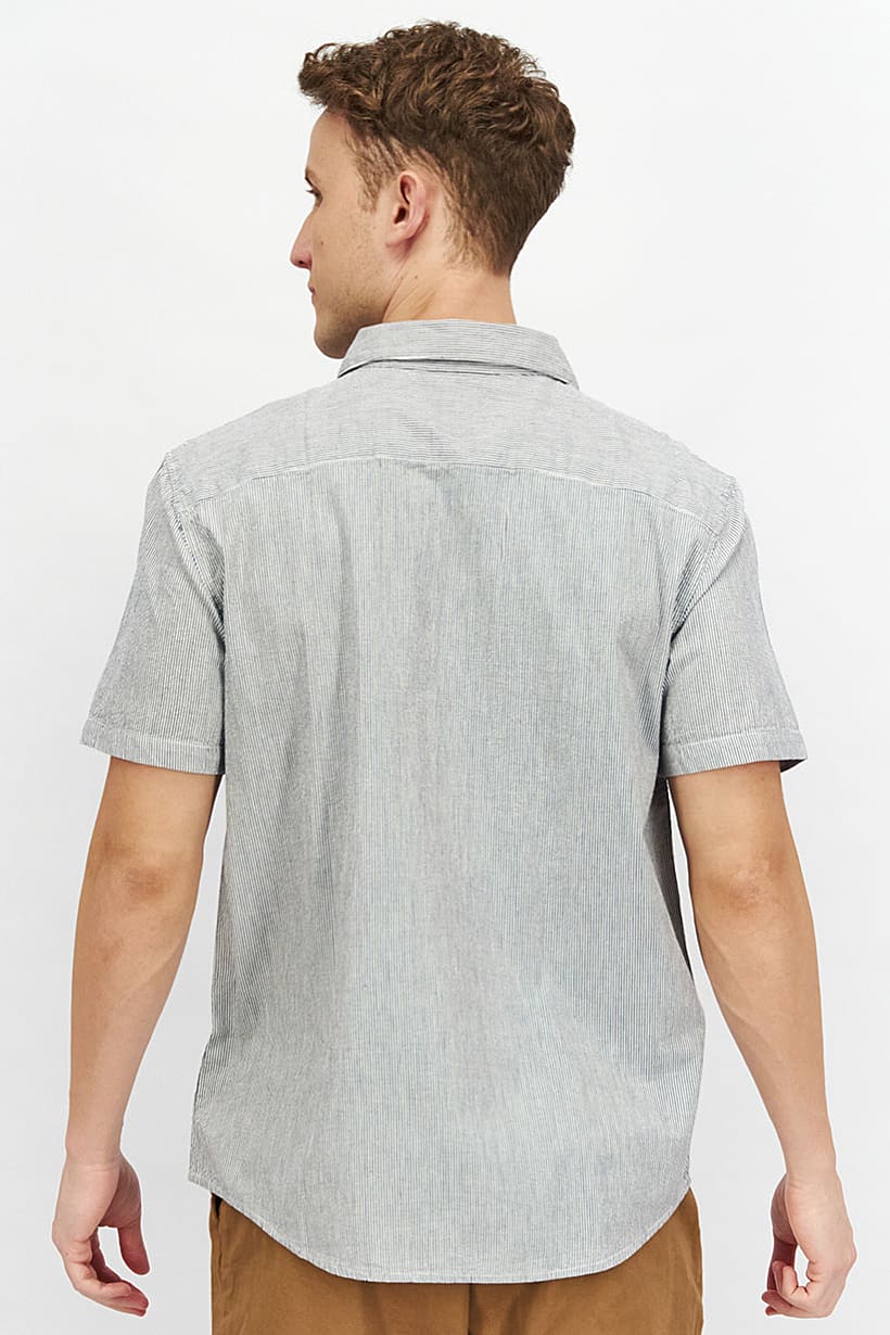 | nameOriginal | Men Regular Fit Stripe Short Sleeves Casual Shirt, Navy Marine |