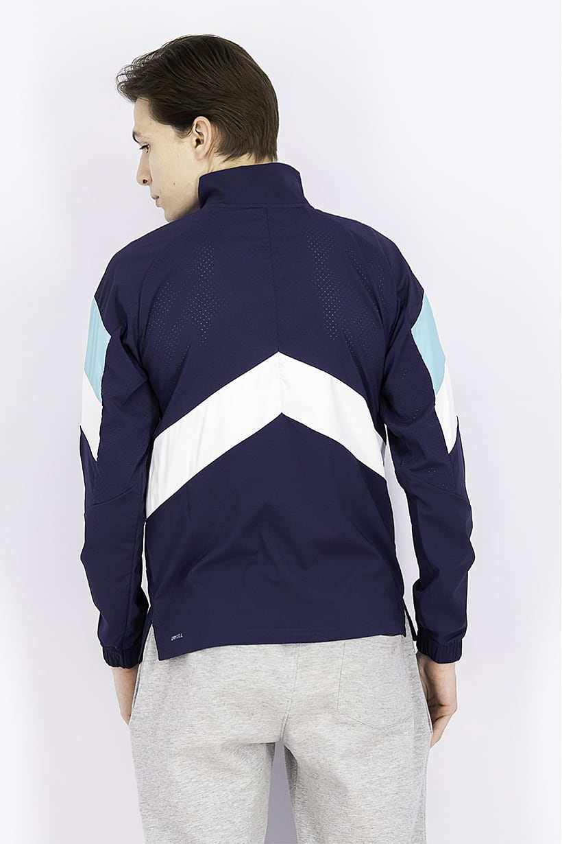 Care : Machine washable, Fit : Regular fit, Size shown : US, Sleeve Length : Long Sleeve, Thickness : Medium, Type of Sport : Training, Disclaimer : Product color may slightly vary due to photographic lighting sources or your monitor settings., Fabrics : 100% Nylon, Occasion : Sport, Pattern & Print : Brand Logo, Sportswear Type : Jackets, Types of Closures : Zipper closure, Color Family : Navy Blue,