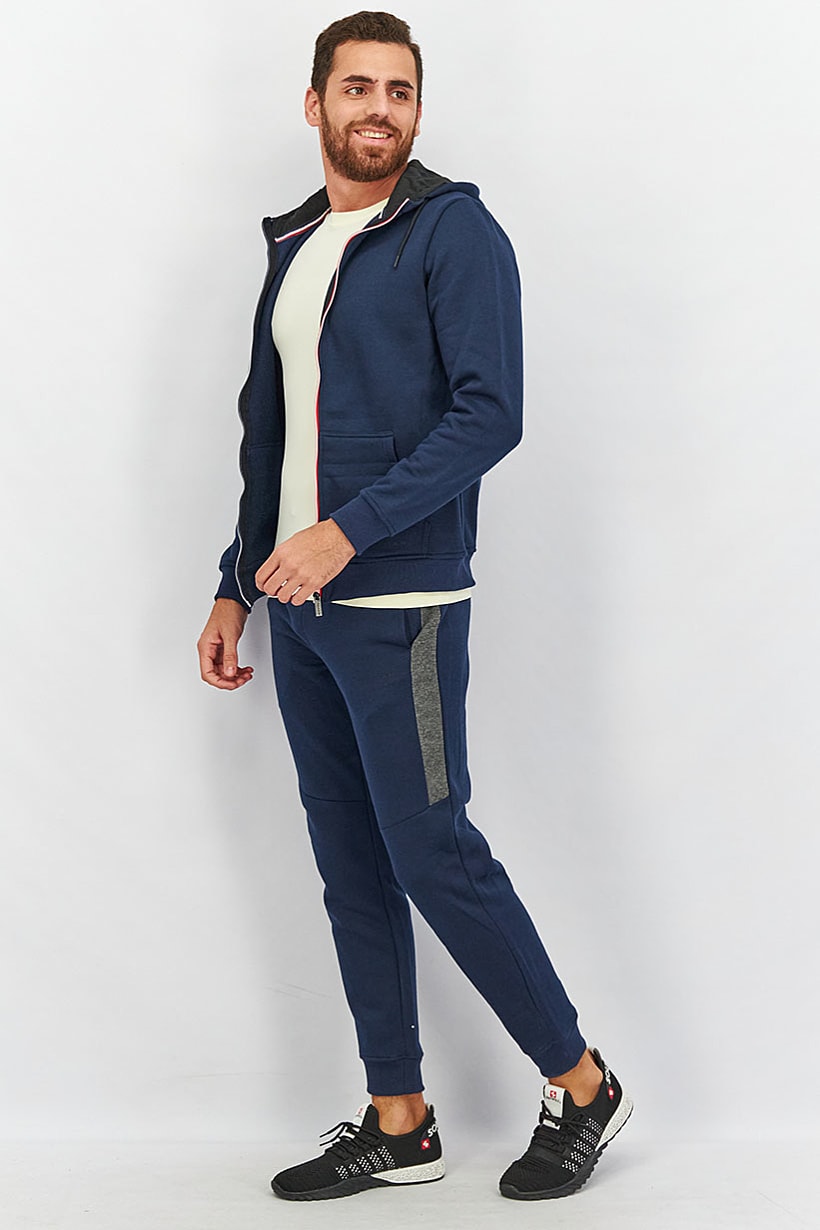 Men Clothing, Sportswear, men 2 pieces sportswear fit sweatshirt and jogger pants set navy