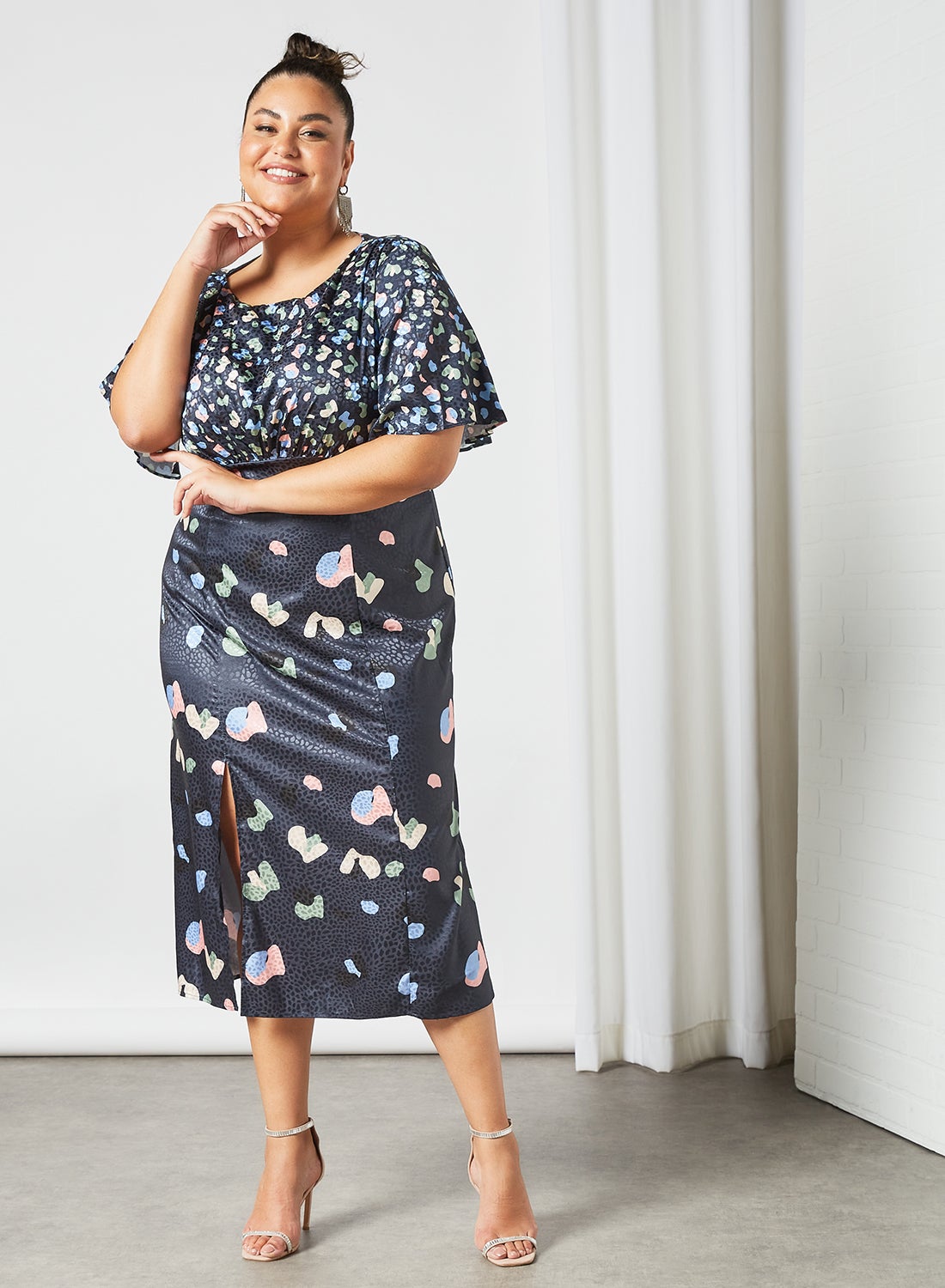 | nameOriginal | Plus Size Abstract Print Midi Dress Navy |
