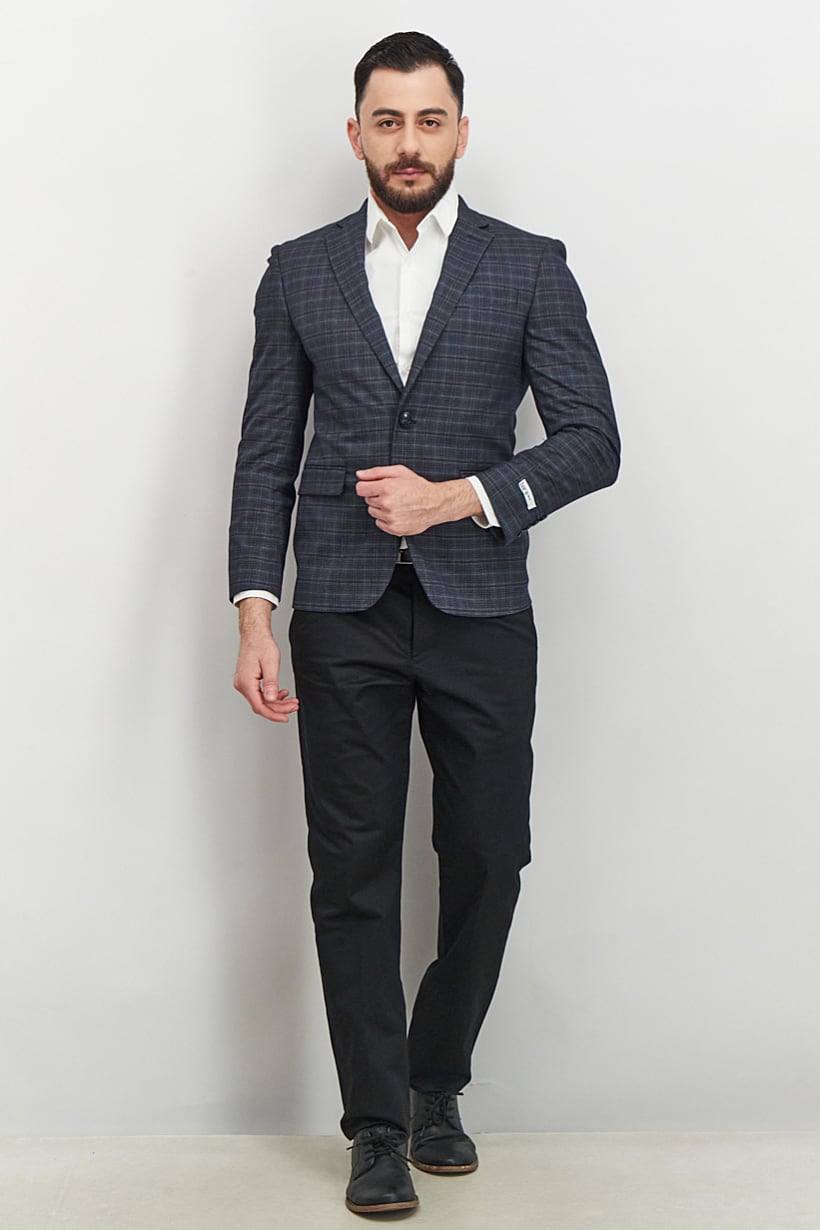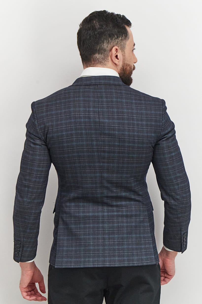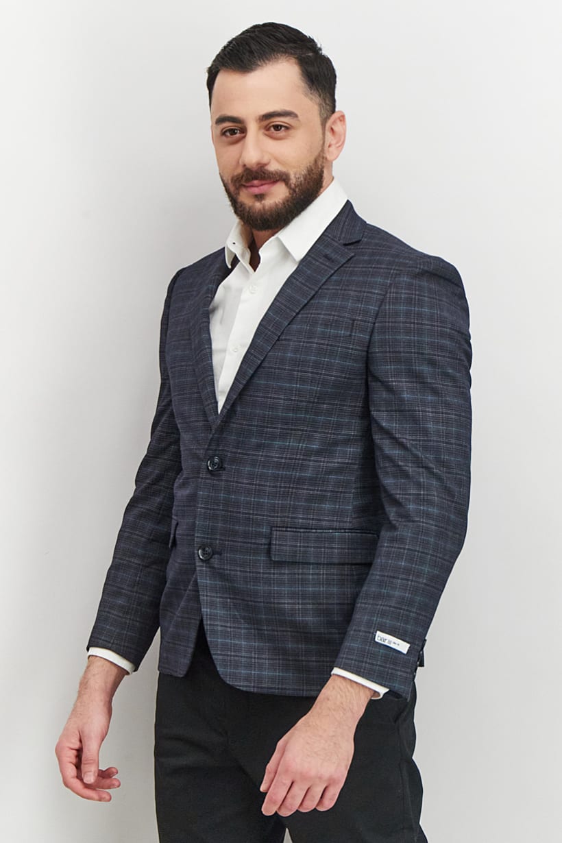 Navy Plaid Slim Fit Men’s Blazer.