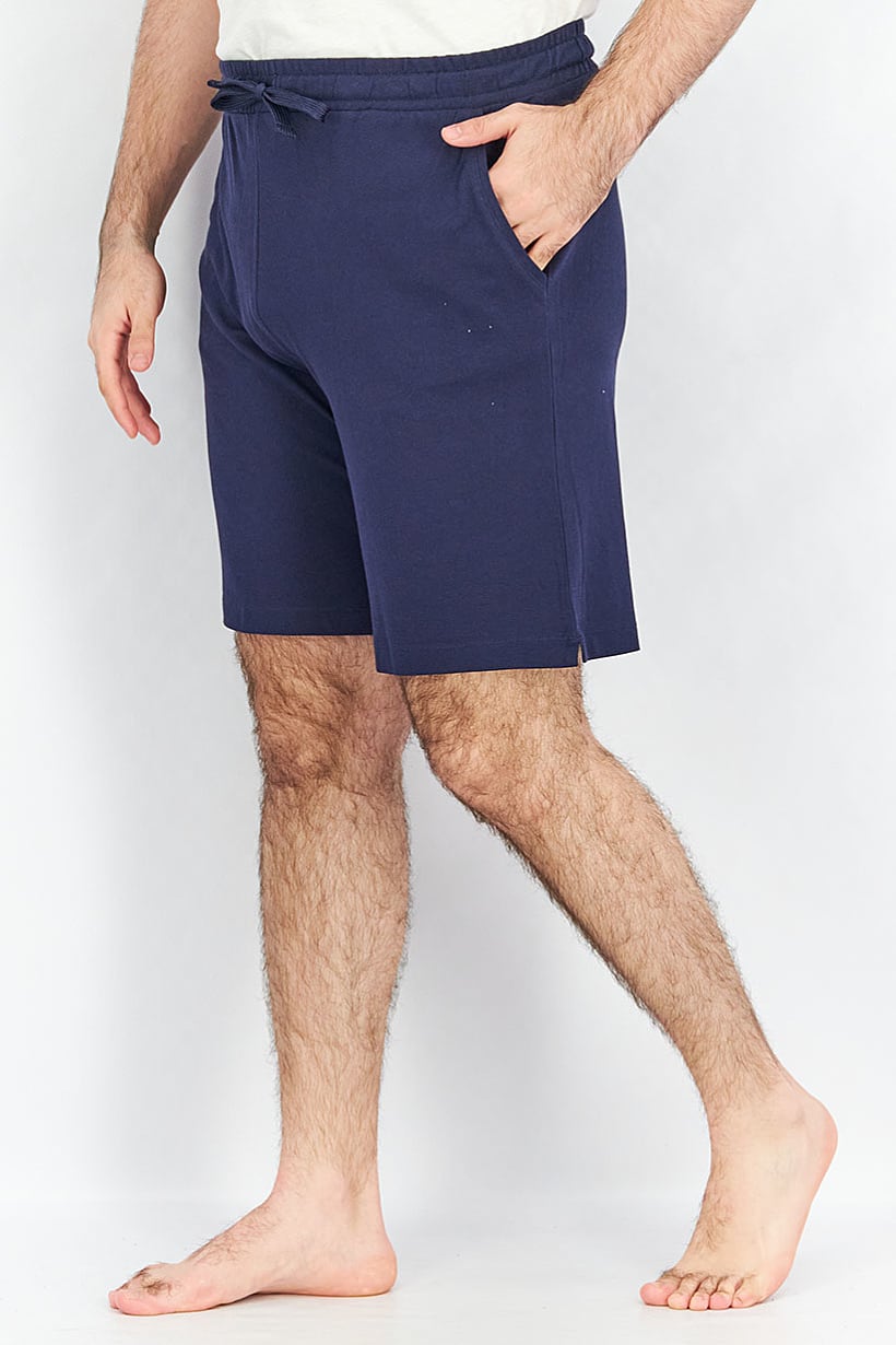Navy Plain Pajama Shorts for Men with Elastic Waist.