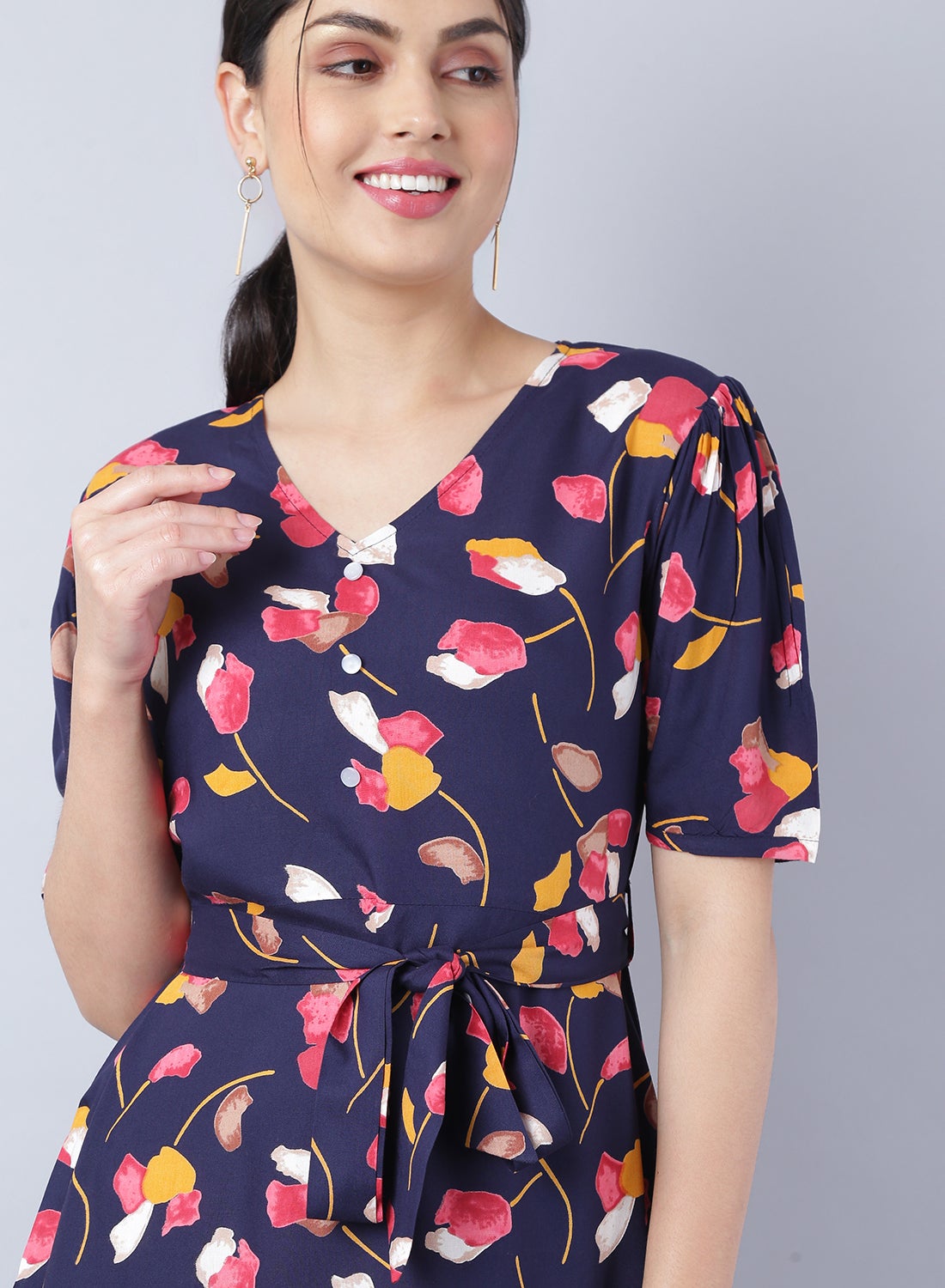 | nameOriginal | Short Sleeve Midi Dress Navy AOP |