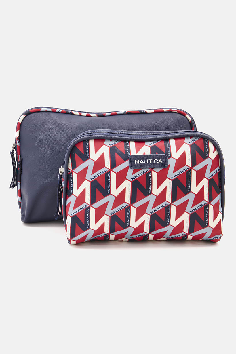 Navy/Red Cobo Women’s Printed Cosmetic Bags Set.