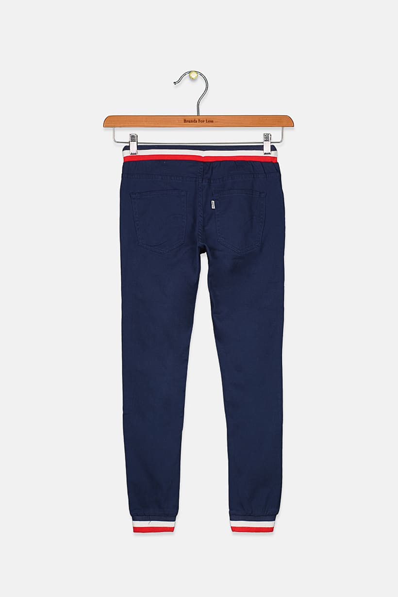 This product is designed for boys and features a regular fit with an elasticized bottom hem and drawstring closure. It has a five pocket style and is made from a blend of 97% cotton and 3% elastane. It is machine washable and ideal for casual occasions. Please note that the product color may vary slightly due to lighting or monitor settings. The color family is navy blue and the pattern is plain/solid.