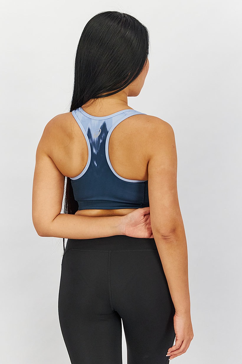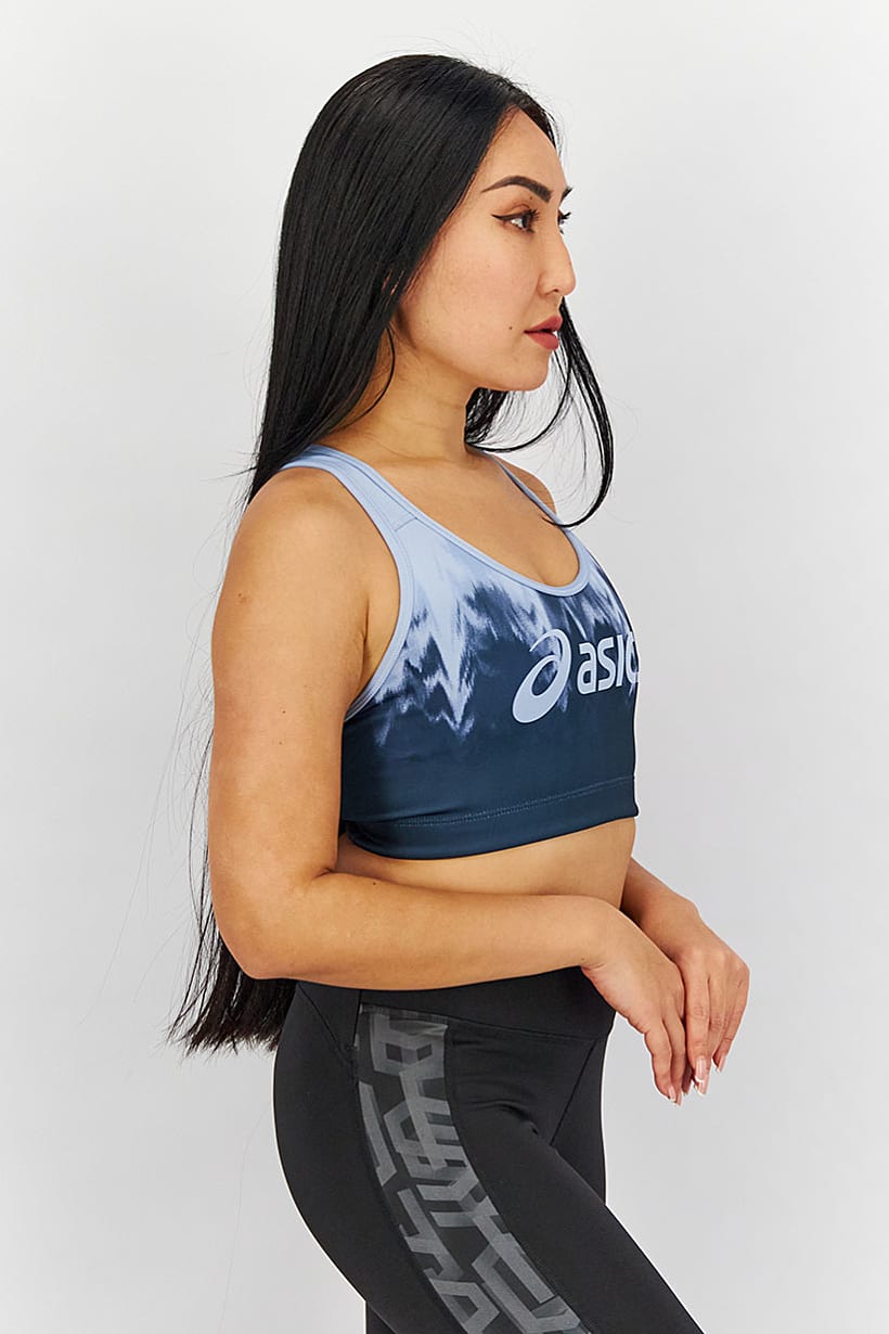 This sports bra is perfect for women who enjoy running. It has a sportswear fit and a round neckline with no padding. The bottom hem is elasticized and it is made of a light fabric that is 80% polyester and 20% elastane. The sleeveless design and pullover closure make it easy to wear during physical activity. The brand logo is printed on the navy blue fabric. It is machine washable and ideal for sport occasions. Please note that due to hygiene reasons, returns are not accepted on lingerie, socks, undergarments, and swimwear.
