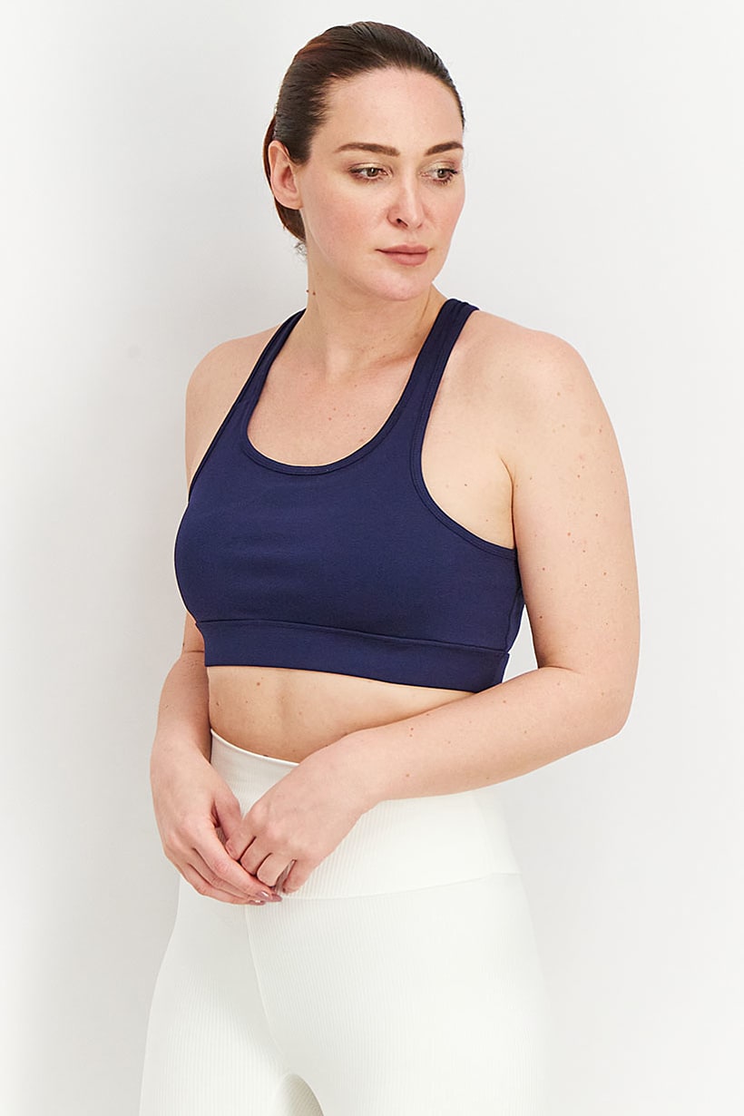 Care : Machine washable, Fit : Sportswear Fit, Ideal For : Women, Padding : No, Size shown : International, Sleeve Length : Sleeveless, Thickness : Light, Type of Sport : Training, Types of Hem : Straight hem, Types of Neckline & Collar : Scoop neckline, Types of Sleeve : Sleeveless, Disclaimer : Product color may slightly vary due to photographic lighting sources or your monitor settings., Fabrics : 80% Recycled Polyester, 20% Recycled Spandex, Occasion : Sport, Pattern & Print : Plain/Solid, Sportswear Type : Sports Bra, Types of Closures : Pullover, Color Family : Navy Blue, Disclaimer : No returns accepted on lingerie, socks, undergarments and swimwear due to hygiene reasons.,