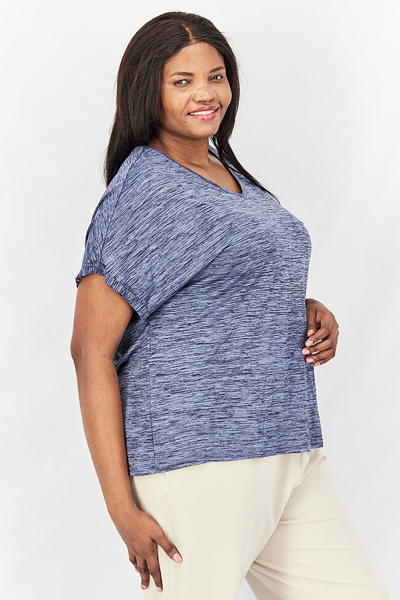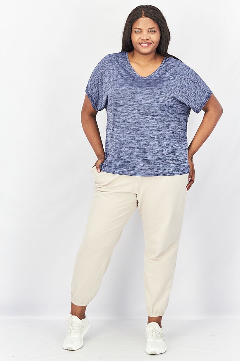 | nameOriginal | Women V-Neck Short Sleeves Space Dye Performance Top, Navy |