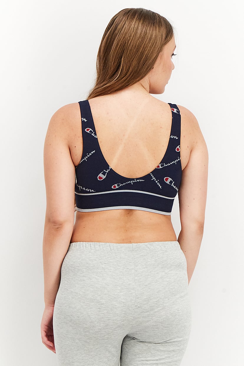 Women Non Padded Unlined Brand Logo Sports Bra, Navy