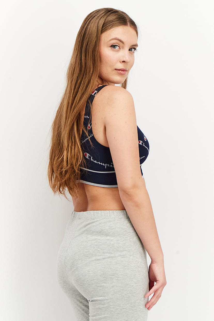 Navy Sports Bra with Brand Logo, Unlined and Non-Padded for Women.