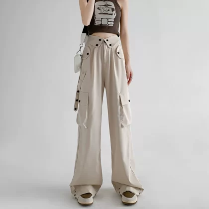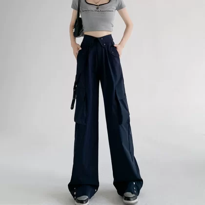 nameOriginal | Navy Spring and Autumn Retro Casual High Waist Overalls |
