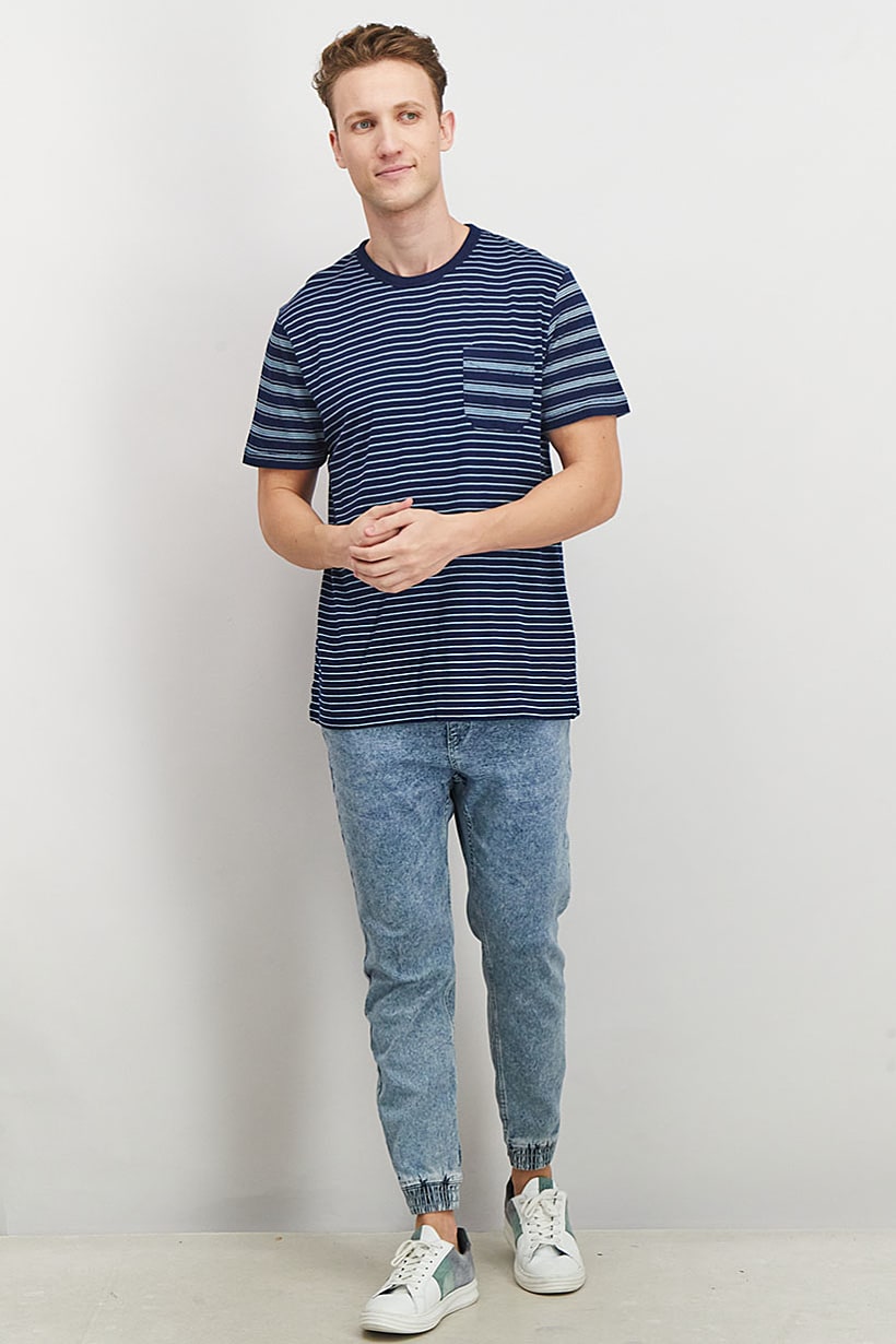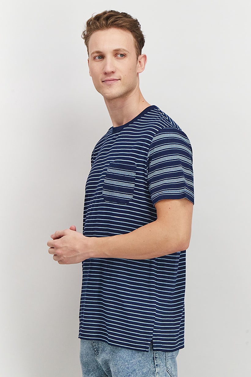 | nameOriginal | Men Crew Neck Short Sleeves Stripe Chest Pocket T-shirt, Navy |