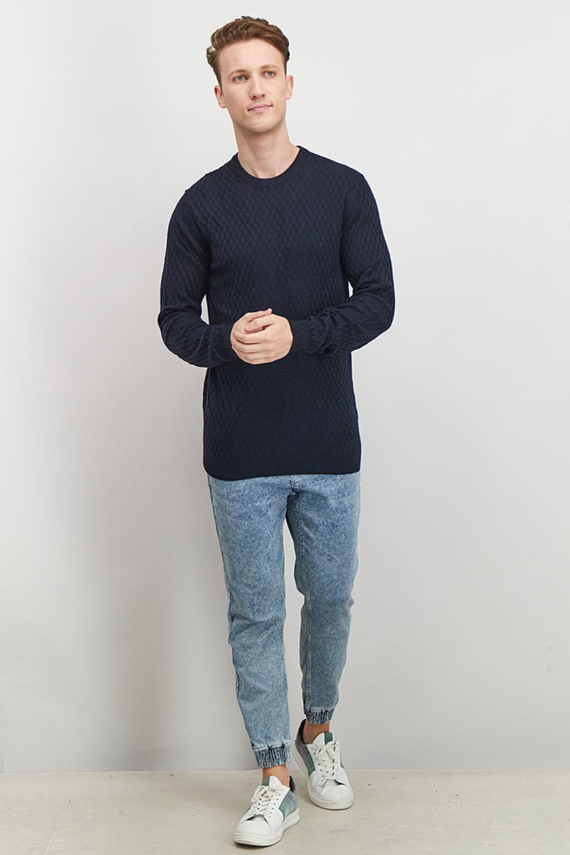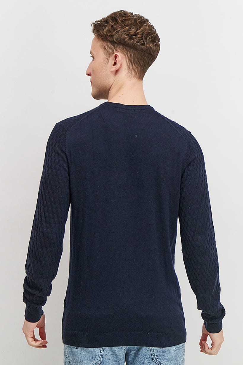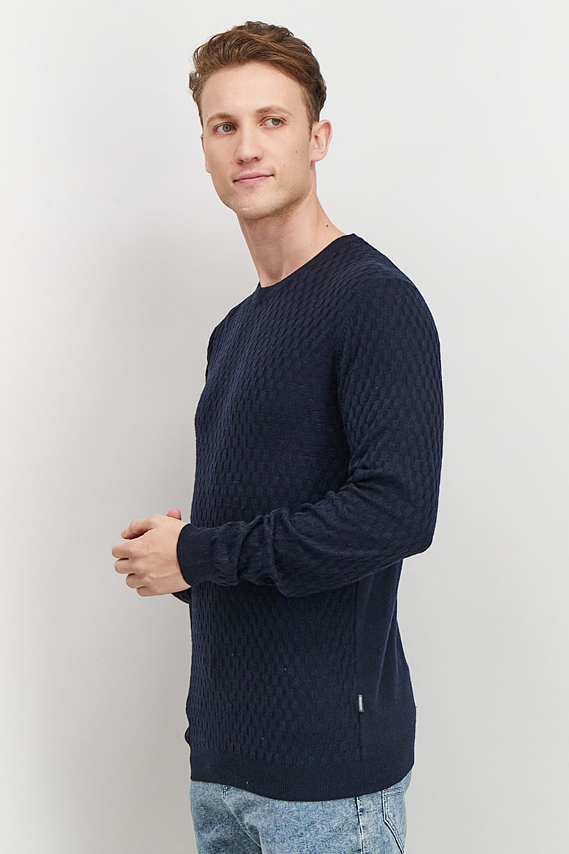| nameOriginal | Men Crew Neck Textured Long Sleeves Sweater, Navy |
