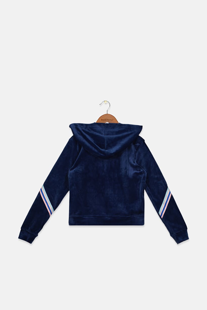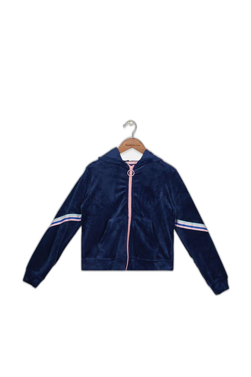 Navy Textured Hooded Jacket for Girls with Long Sleeves.