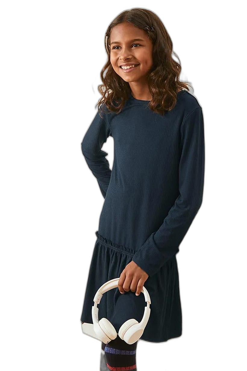 Girls Fashion, Girls Dresses, kids girl long sleeve textured dress navy