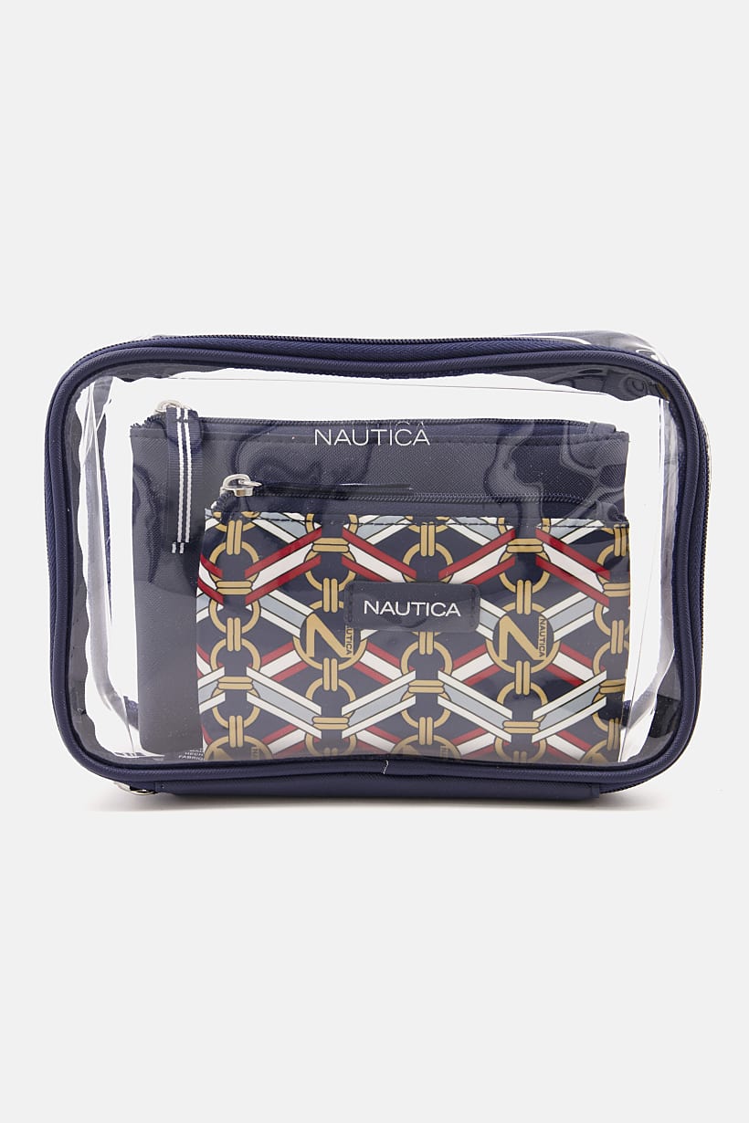| nameOriginal | Women 3 Pieces Brand Logo Cosmetic Bag 23 L x 15 H x 8 W cm, Navy/Transparent |