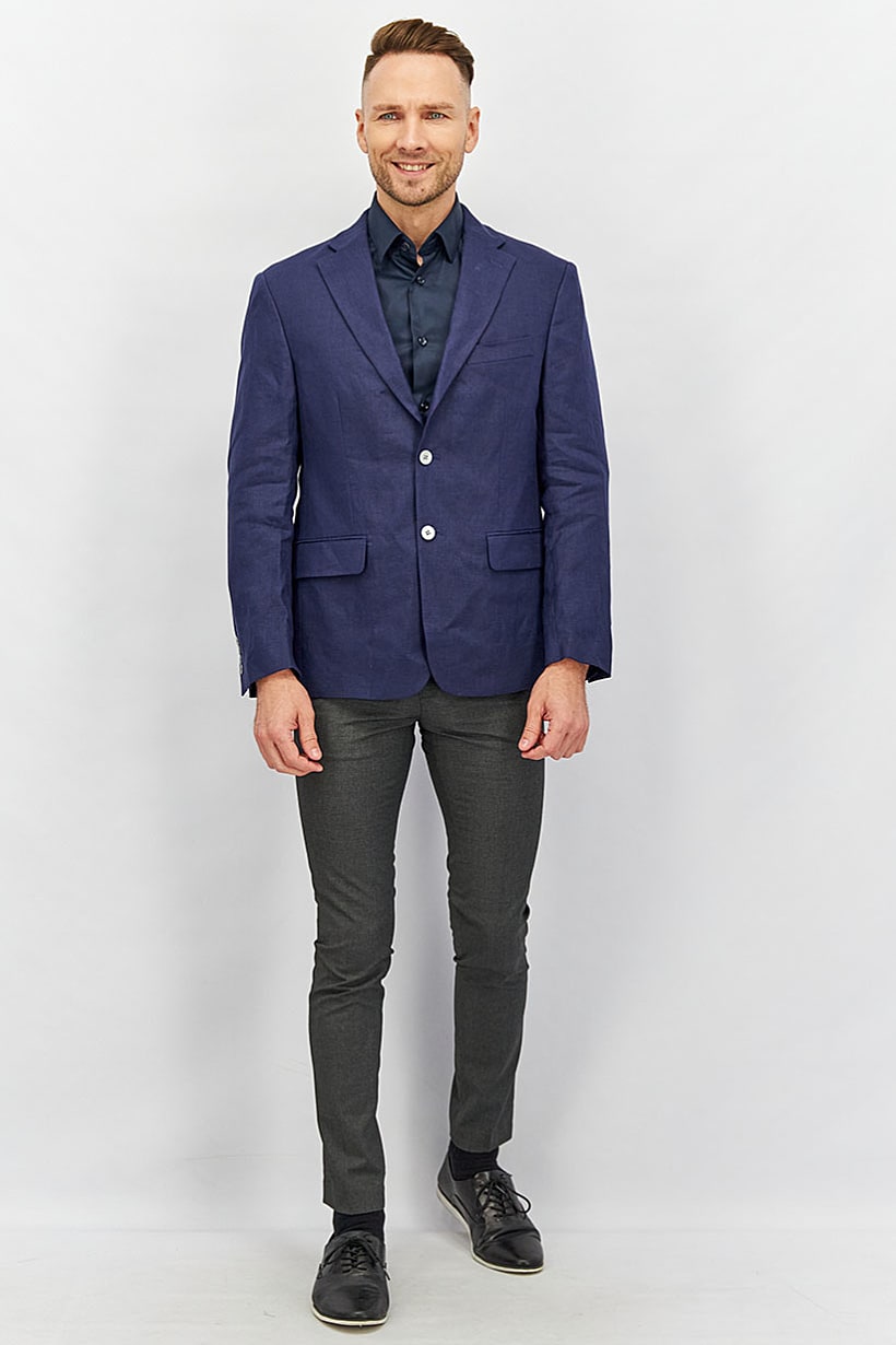 Care : Dry clean, Fit : Regular fit, Size shown : Inches, Suit Type : Suit Jackets, Type of Neckline & Collar : Notched collar , Disclaimer : Product color may slightly vary due to photographic lighting sources or your monitor settings., Fabrics : 100% Linen, Occasion : Formal, Pattern & Print : Plain/Solid, Color Family : Navy Blue,