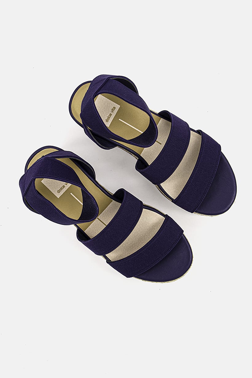 Women Elastic Strap Wedge Heel Sandal, Navy