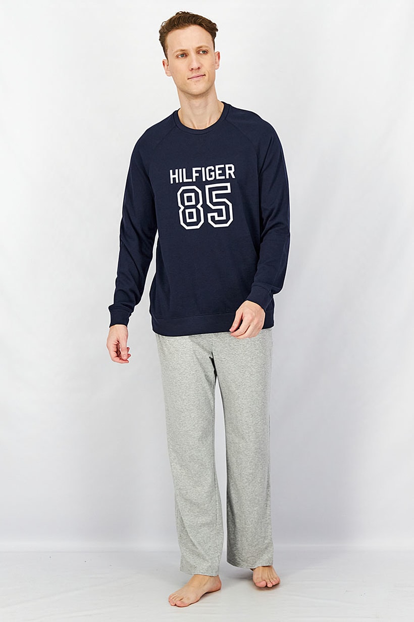 | nameOriginal | Men Crew Neck Brand Logo Long Sleeves Sleepwear, Navy/White |