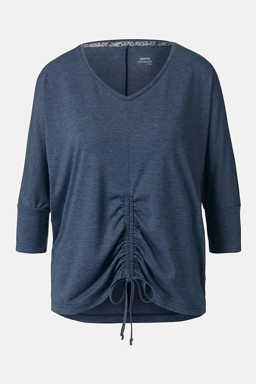 Care : Machine washable, Ideal For : Women, Types of Hem : Tie hem, Fabrics : 65% Polyester, 35% Viscose, Occasion : Sport, Pattern & Print : Plain/Solid, Sportswear Type : Tops, Types of Closures : Pullover, Color Family : Navy Blue, Type of Sport : Yoga,