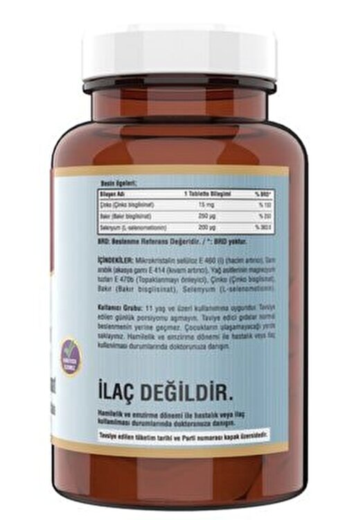 Ncs Zinc Bisglycinate Selenium Copper The First And Only Zinc Element In Turkey 120 TABLET 1 TABLET CONTENTS Zinc Bisglycinate… 15 mg Copper Bisglycinate… 250 mcg Selenium… 200 mcg Recommendation for Use 1 Tablet per Day After Meals Expiration Date 2024/June
