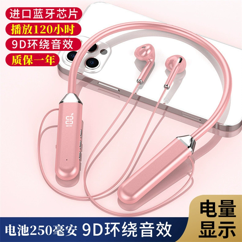 Neck-mounted Bluetooth headset, sports wireless, ultra-long battery life, double girls' semi-in-ear, large battery, waterproof and noise reduction