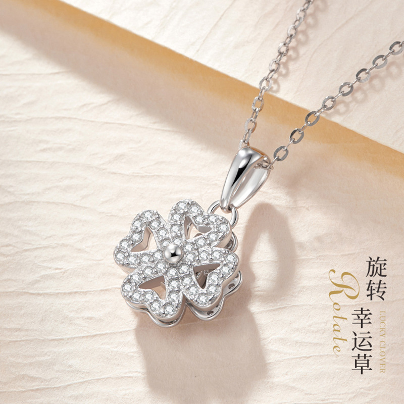 | nameOriginal | Necklace women sterling silver four-leaf clover rotating pendant 2022 new clavicle chain temperament all-match girlfriends birthday gift |
