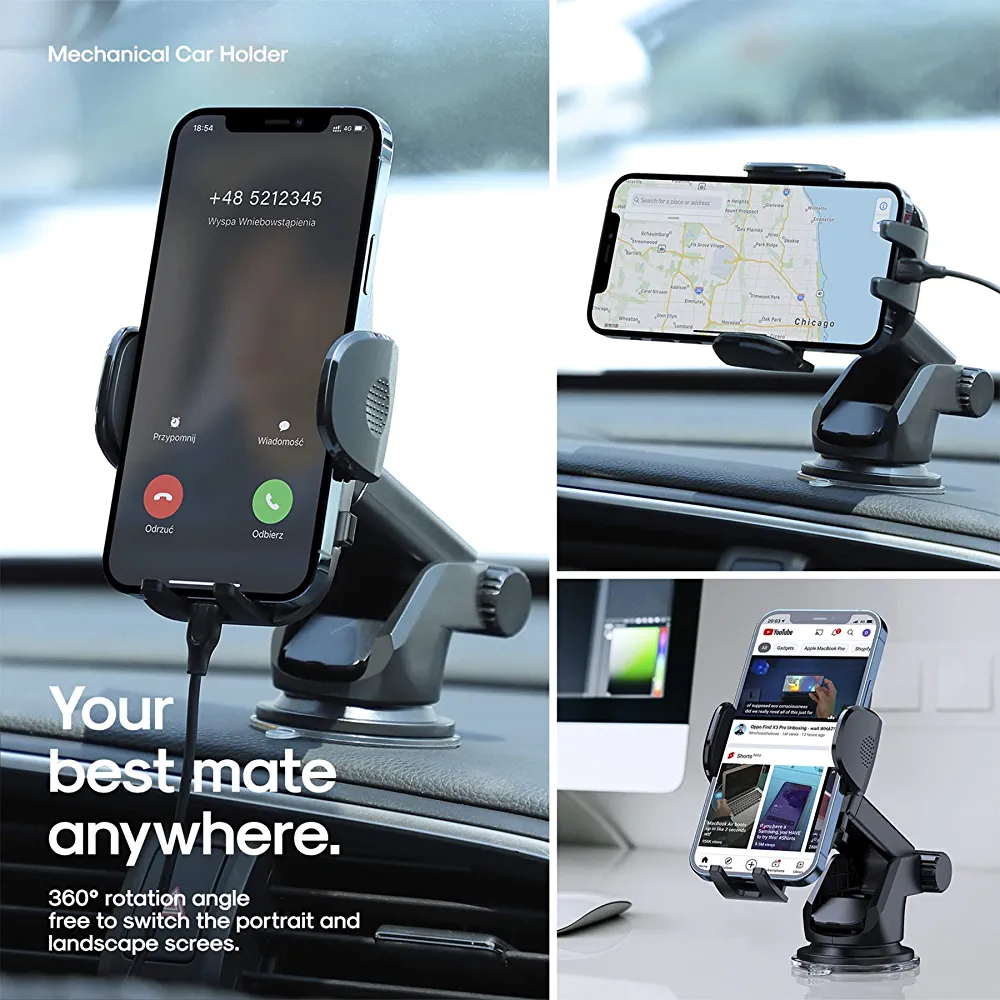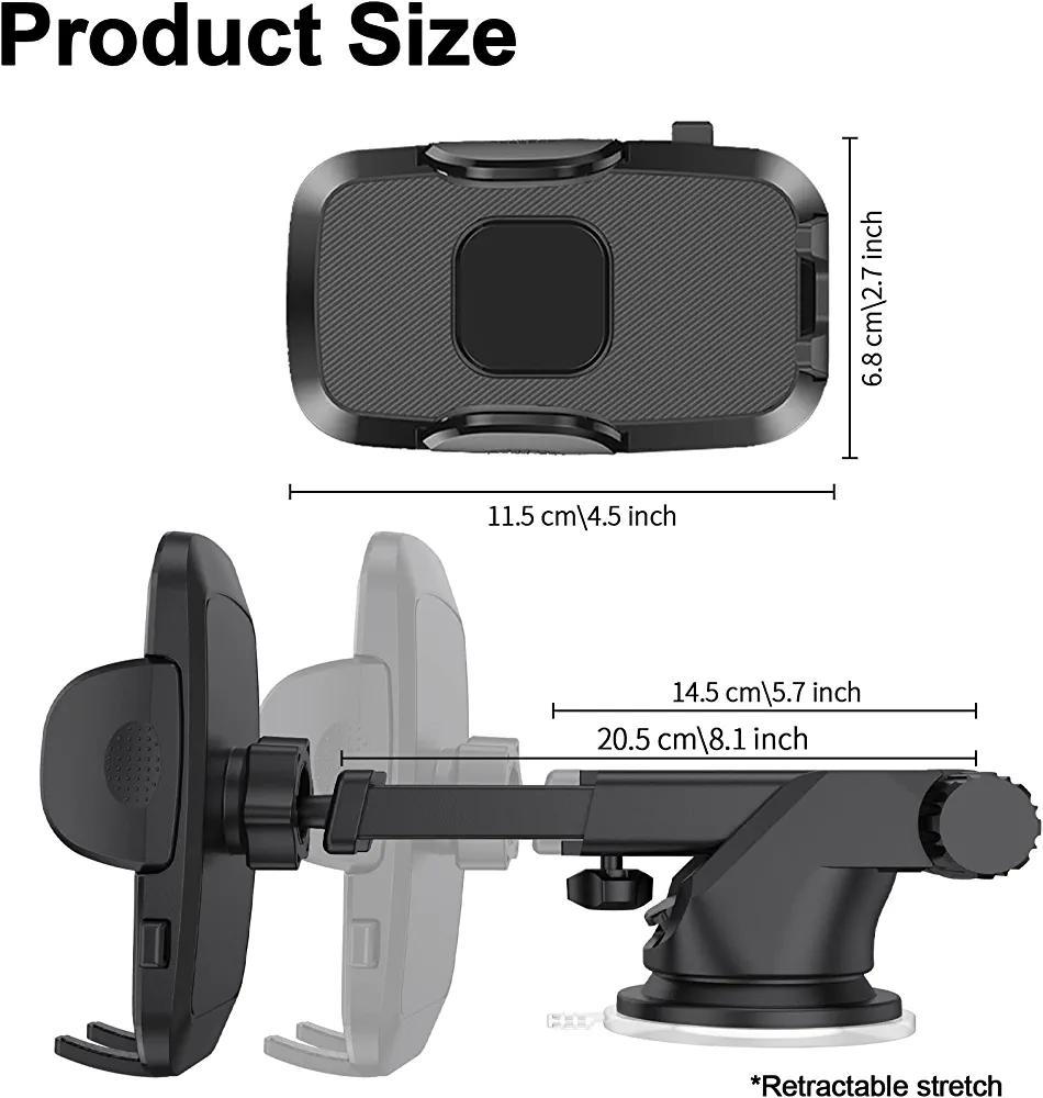 With this product, you can solve all your phone mounting troubles at once. The suction cups fit 90% of dashboards, while the vent clips fit 90% of vents (except for round vents). The combination of the two accessories can adapt to almost all models, so you never have to worry about which product to choose again.