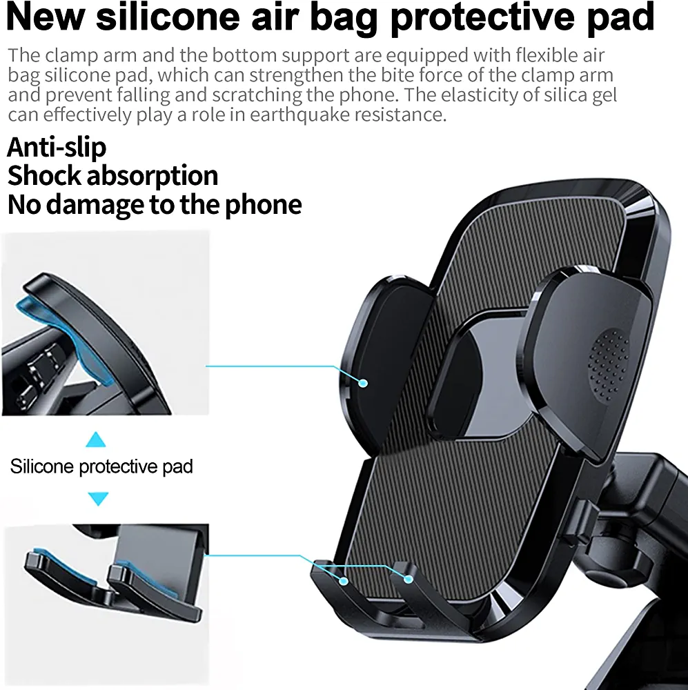 Introducing the Necomi 2022 New Version 4 in 1 Car Phone Holder Mount, designed to provide you with a comfortable and secure phone mounting experience while driving. The upgraded soft silicone rubber pad ensures cushioning, shock resistance, and tight clamping, while the extra vent clip fits most types of car air vents and comes with thick silicone pads to prevent scratches on your car vents.
