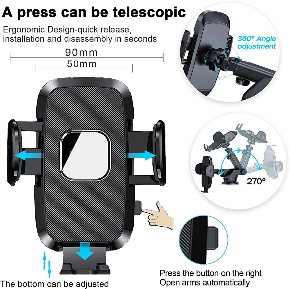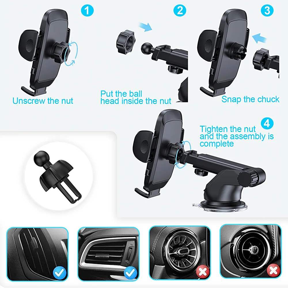 This phone holder mount is compatible with all cellphones in the 4”-7” size range, including popular models such as Huawei, iPhone, Samsung, LG, Google, OnePlus, and more. The installation process is simple and straightforward, with easy-to-follow steps provided in the instruction manual.