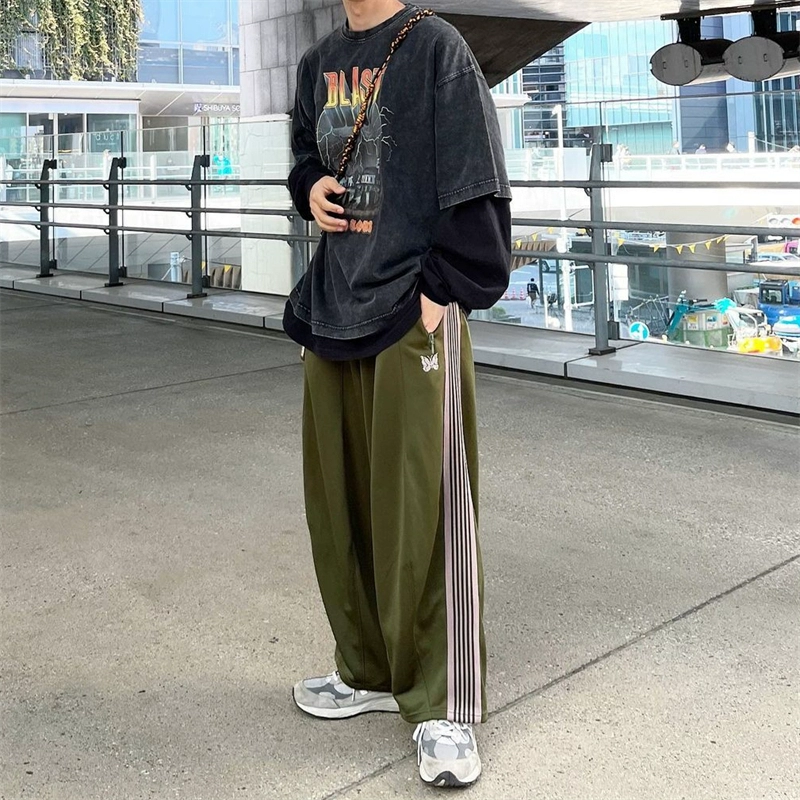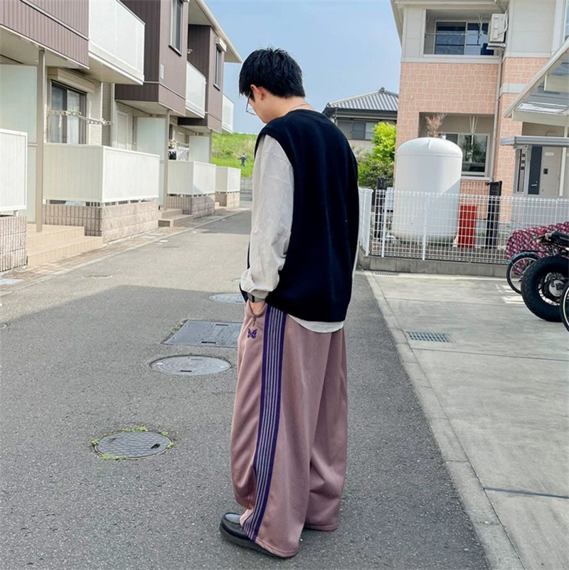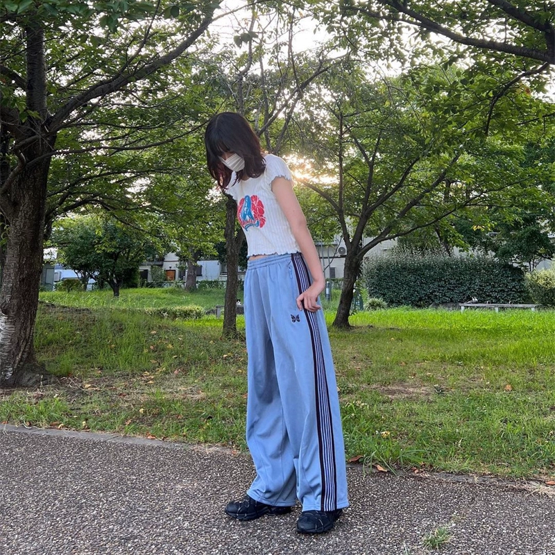 Needles track striped casual trousers embroidered