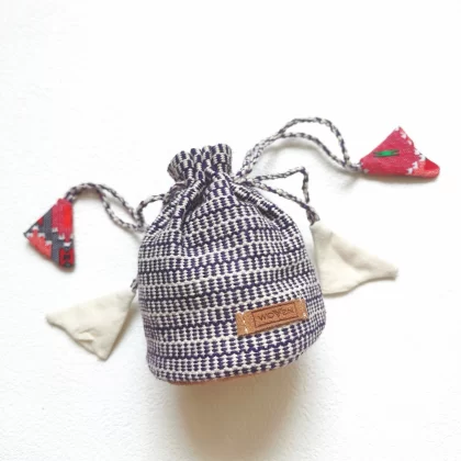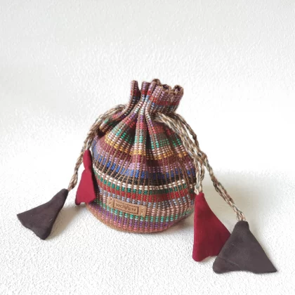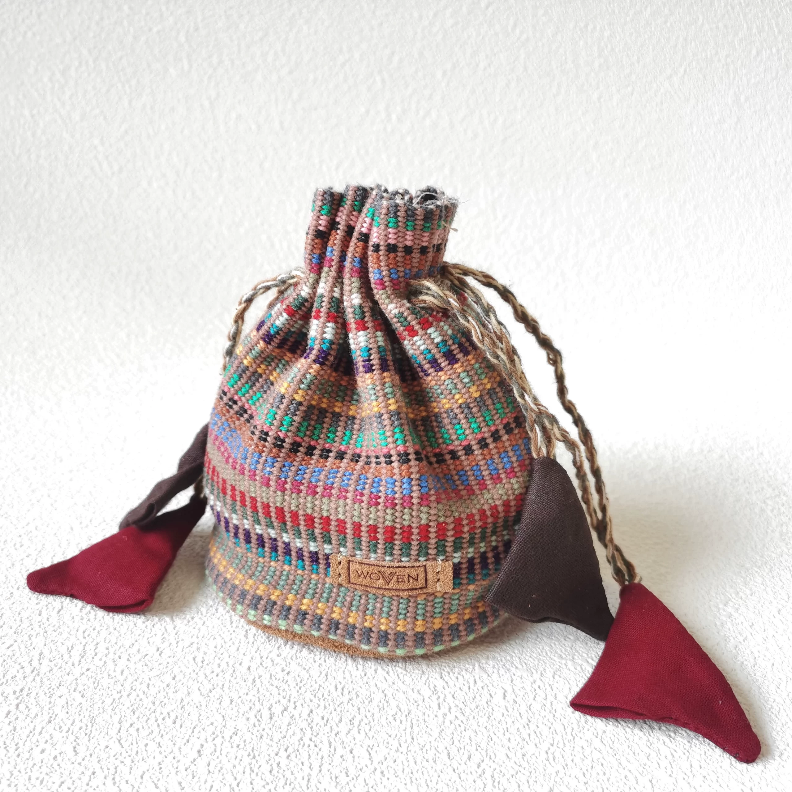 | nameOriginal | Nepalese WSDO pure cotton hand-woven fabric suede cowhide bottom small bunch pocket drawstring jewelry bag small storage bag |