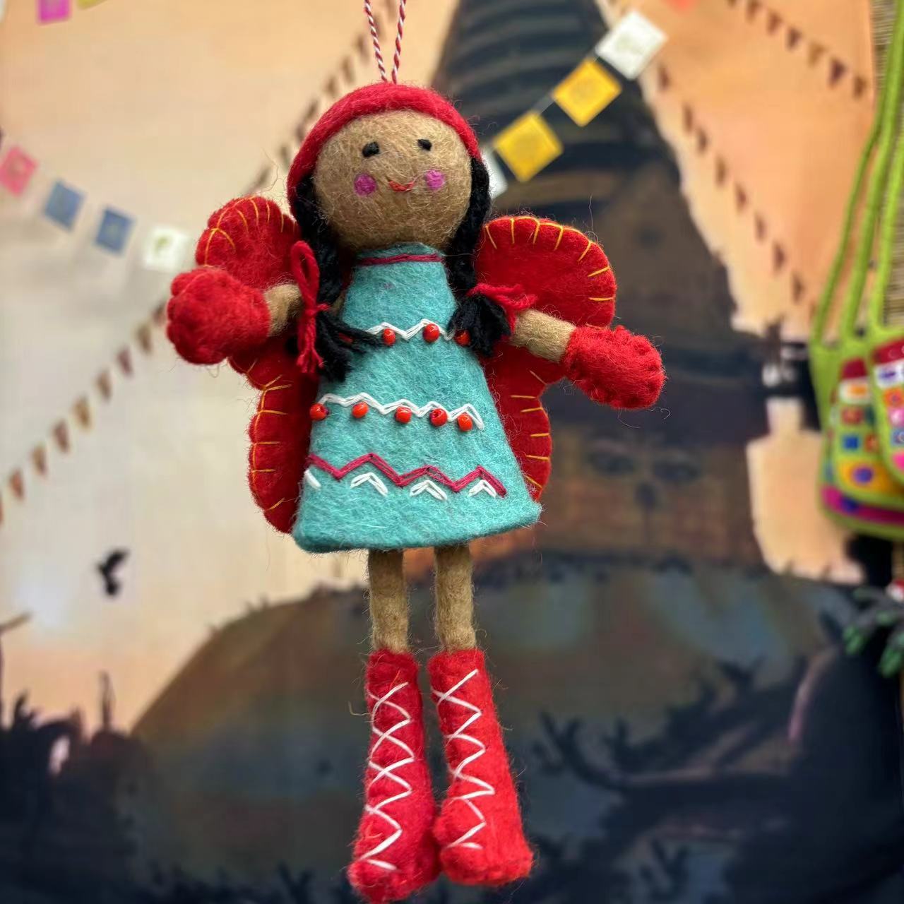 | nameOriginal | Nepali Wool Felt Handmade Poking Lovely Girl Scarf Hat Ballet Girl Elf Mermaid Hanging |