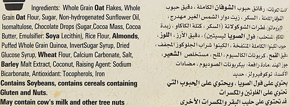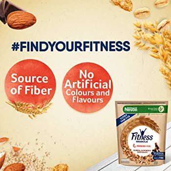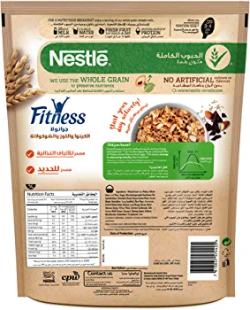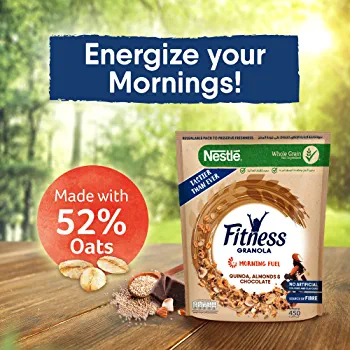 | descriptionOriginal | Nestle Fitness Granola With Quinoa, Almonds & Chocolate Breakfast Cereal Fuel your morning with FITNESS Granola Quinoa, Almonds & Chocolate: a combination of full wholegrain oats and wheat clusters with delicious quinoa and almonds. Rich in fiber, FITNESS Granola also contains a unique carbohydrate that helps to slowly release energy in the morning.* Slow release of energy *Claim is not Verified  |