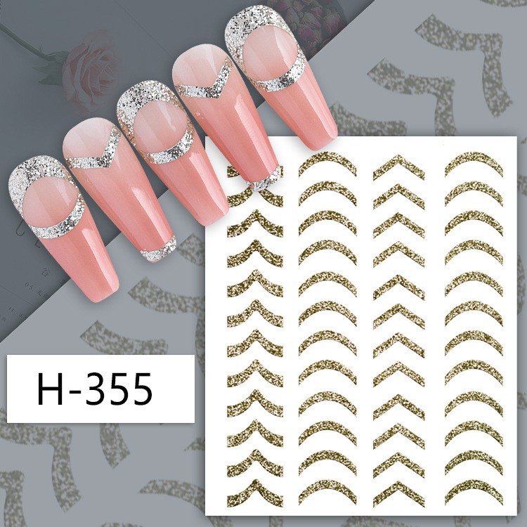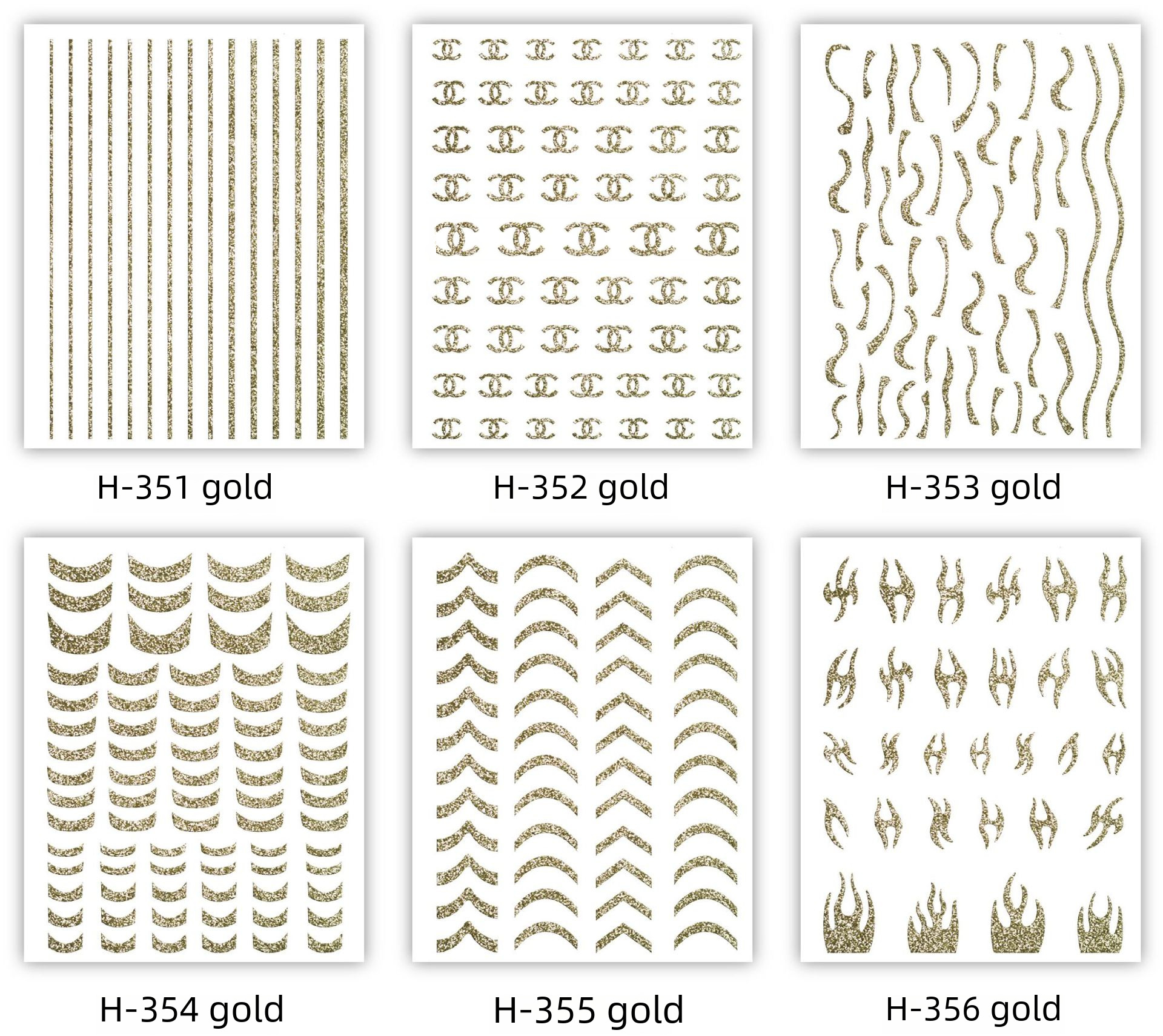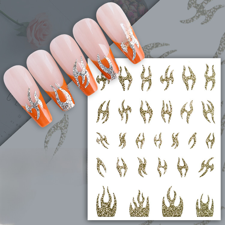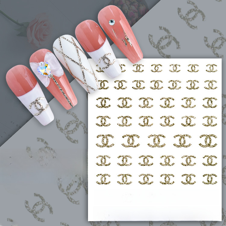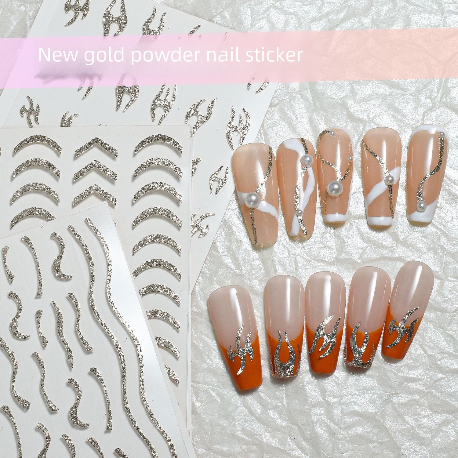 | nameOriginal | Net Celebrity Broken French Nail Art Sticker 2023 New Golden Glitter Powder Line Flame Small Chanel Style Nail Sticker Flash |