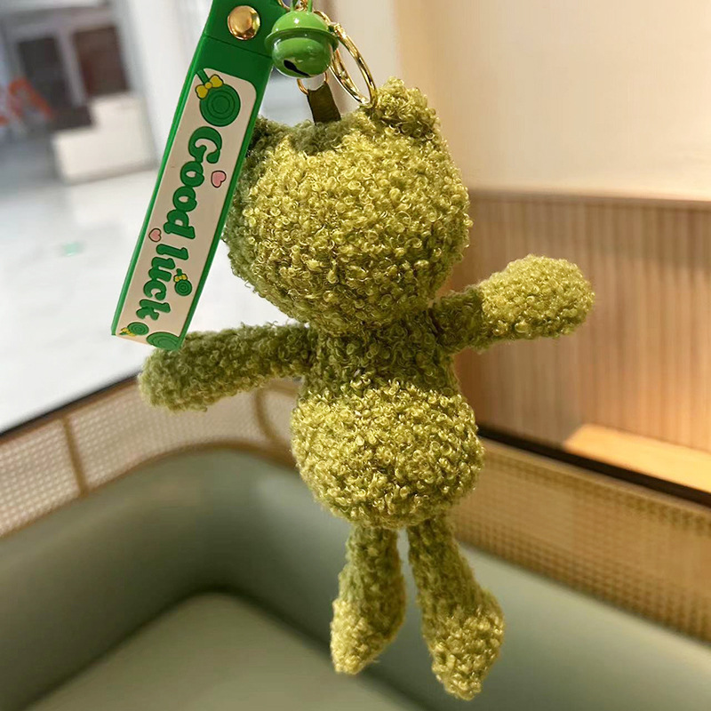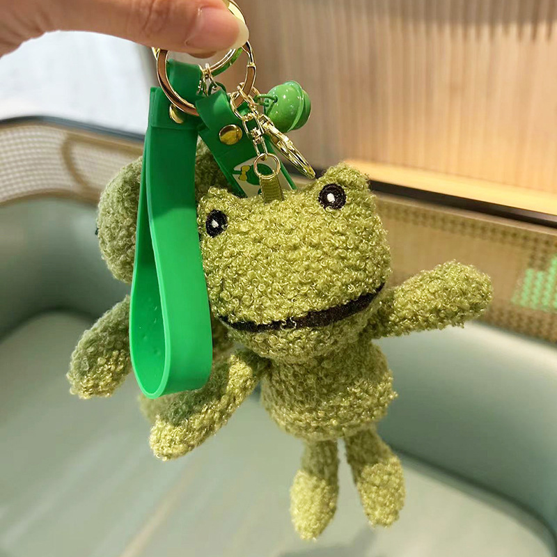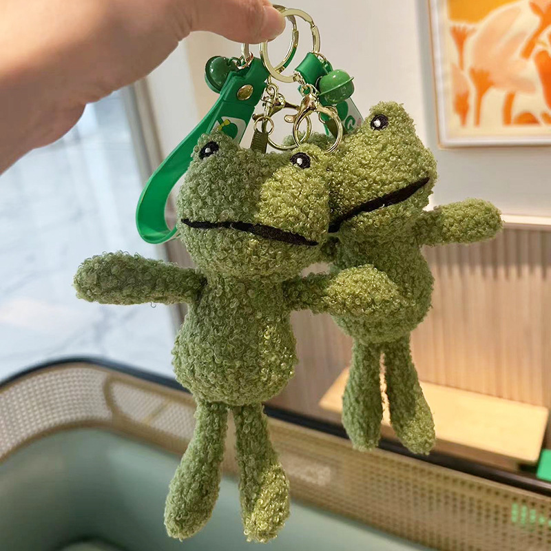 Net red explosions green plush frog doll buckle rope creative cute little frog bag key chain pendant wholesale
