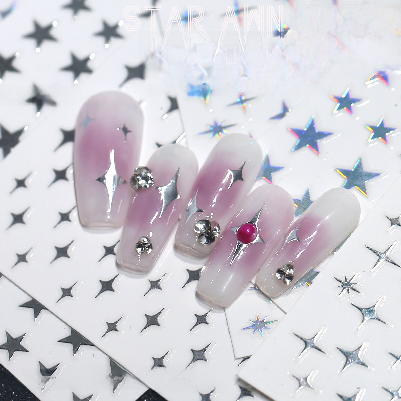 | nameOriginal | Net red explosions ins Wind nail back adhesive paste simple silver star laser five-pointed star 3d nail art stickers wholesale |