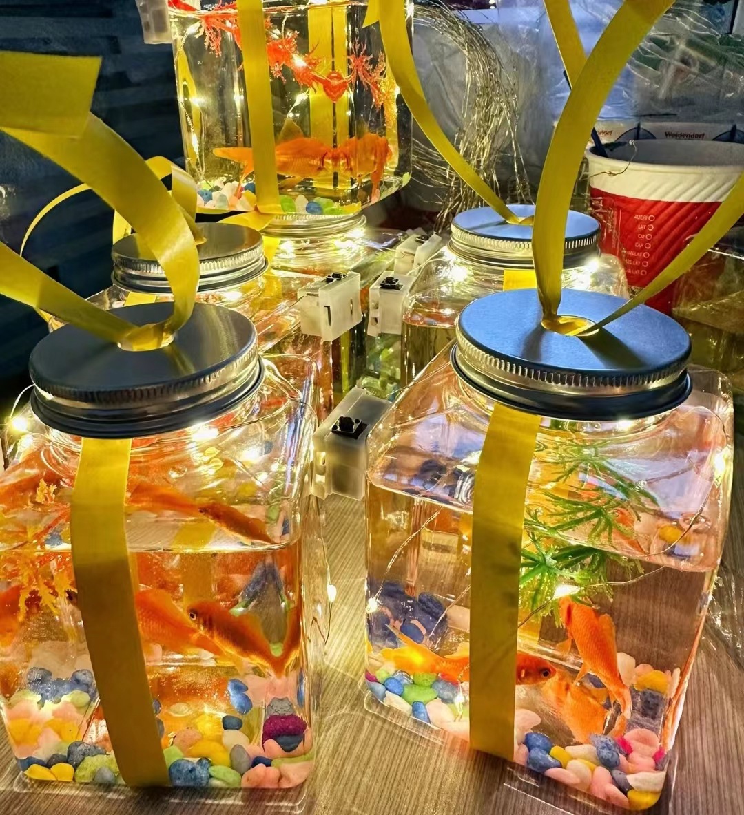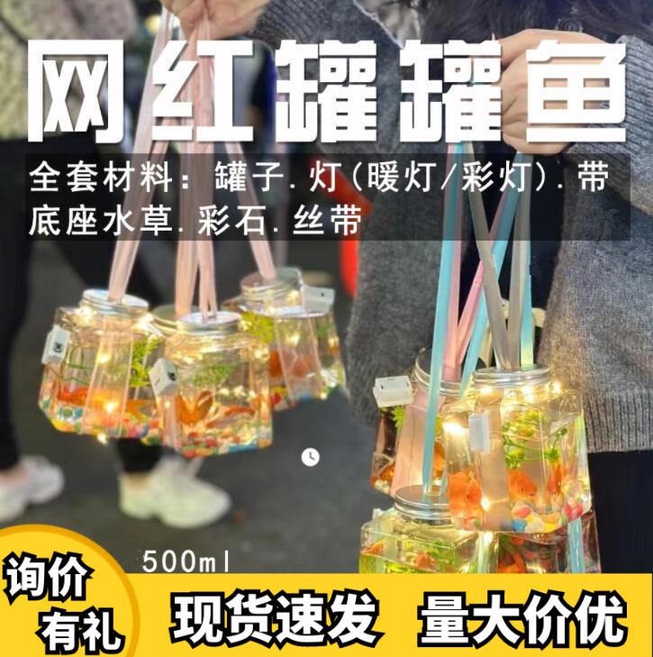 | nameOriginal | Net red jar fish stall luminous crystal wholesale bubble fish bottle ferrule colored stone lamp material bag night market artifact |