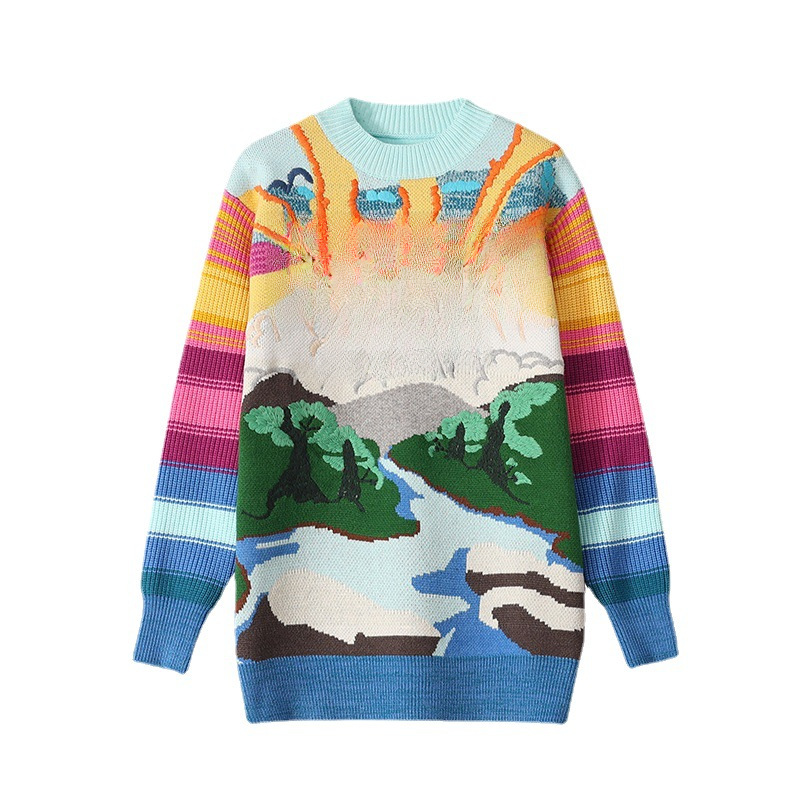 | nameOriginal | Net red with rainbow sweater top female heavy industry embroidered letters sweater sweet grandma dongguan knitting factory wholesale |