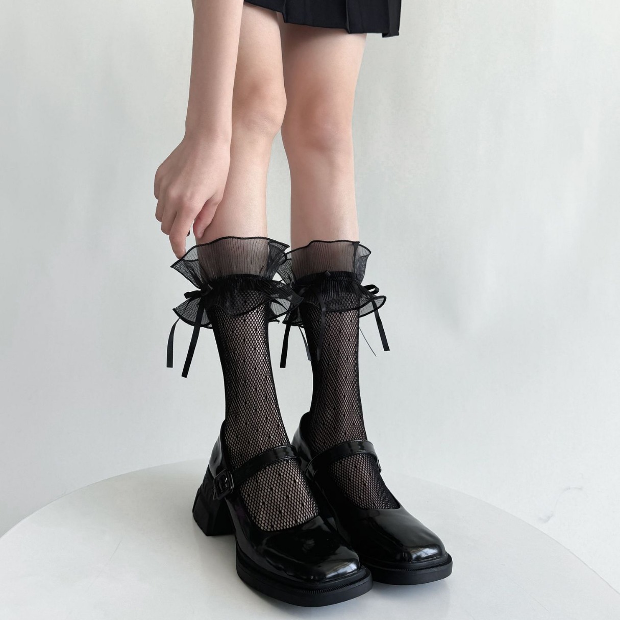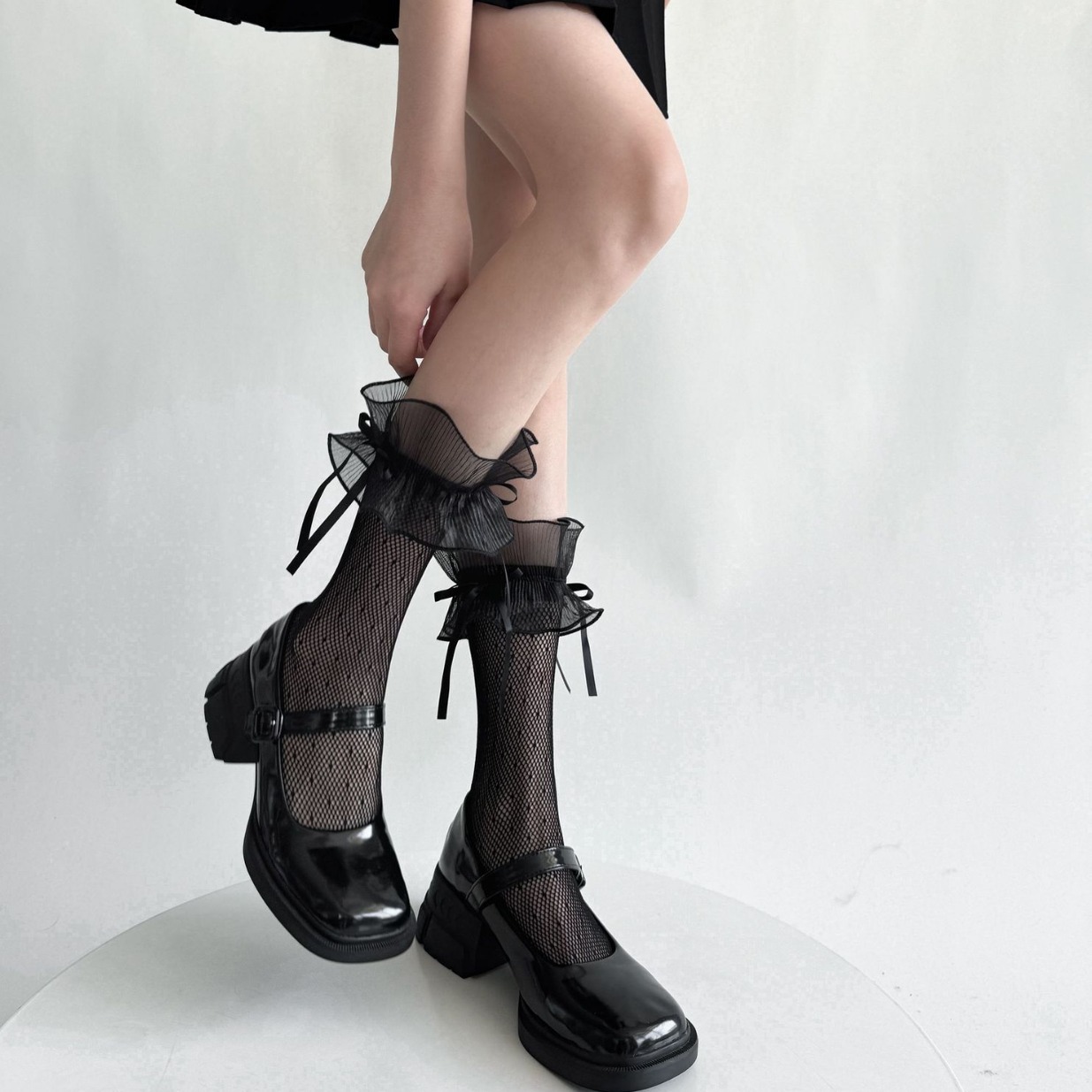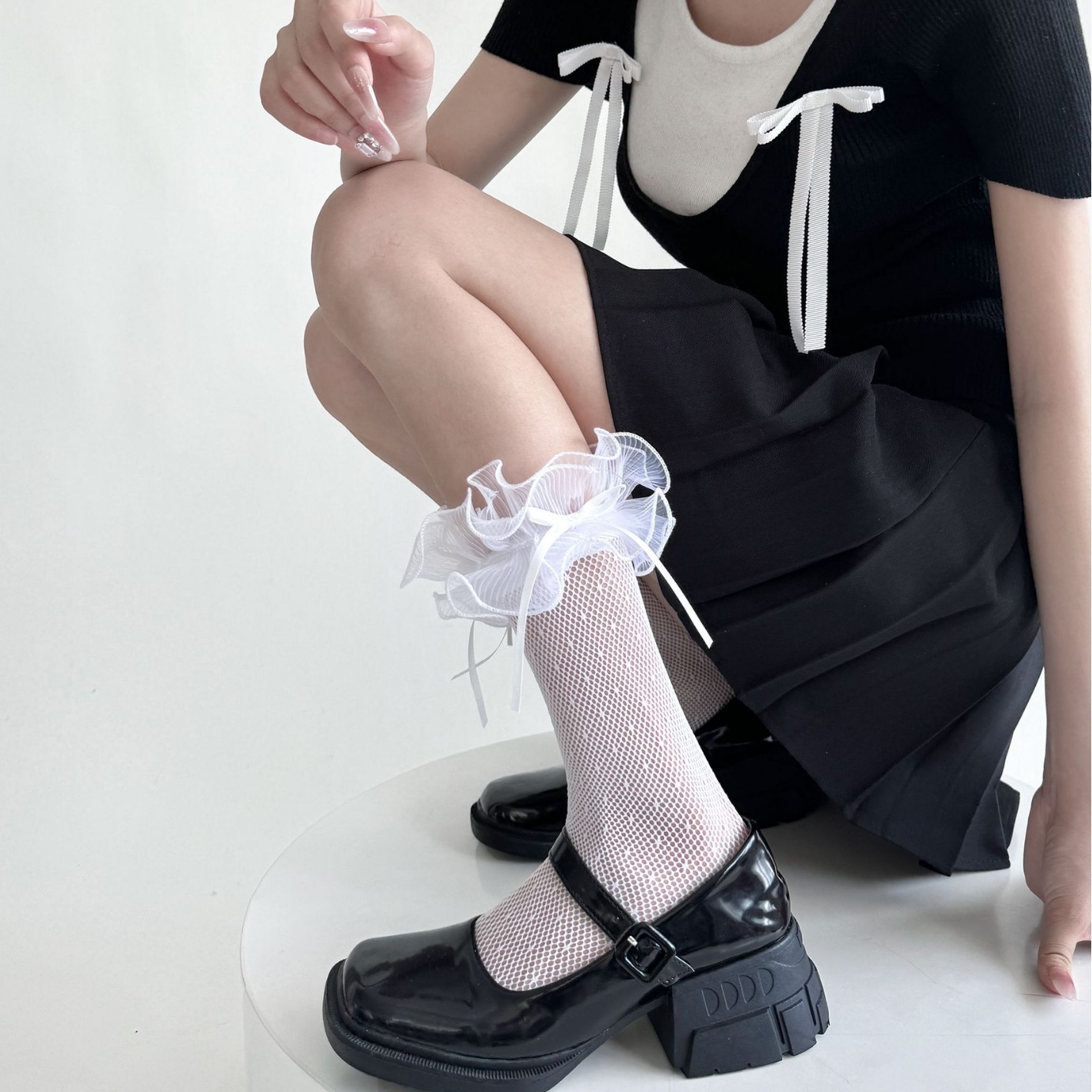 | nameOriginal | Netting Large Lace Bow Sweet White Mid-length Stockings Women's Spring and Summer Japanese Lolita Princess Black Dot |