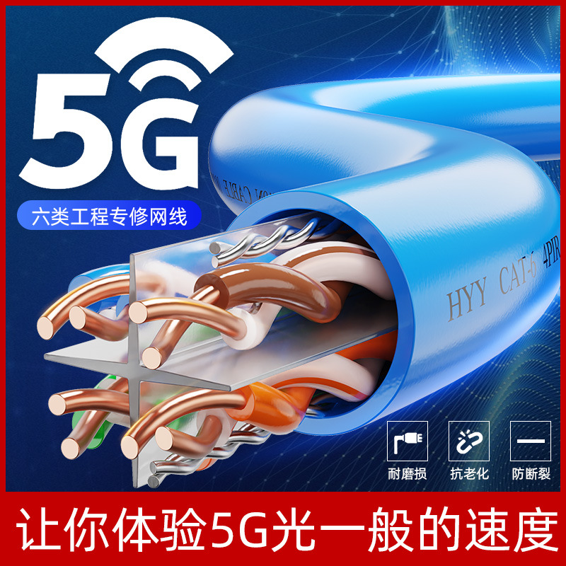 | nameOriginal | Network cable high-speed Super five or six pure oxygen-free copper POE monitoring indoor and outdoor double shielding gigabit network cable household whole box |
