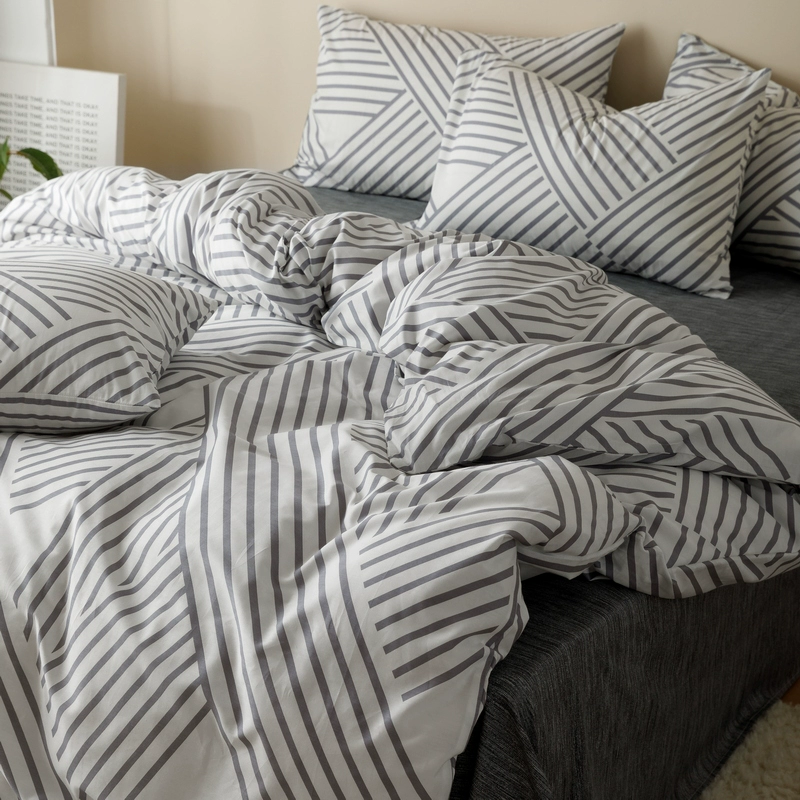 Neutral gray geometric pure cotton apartment 2×2.3 four-piece set