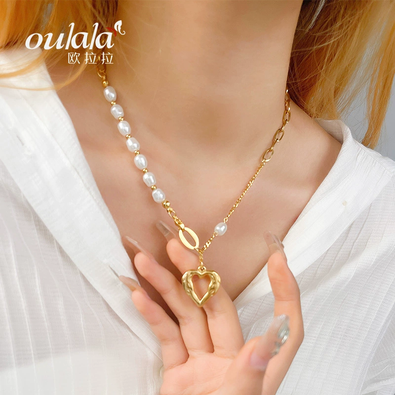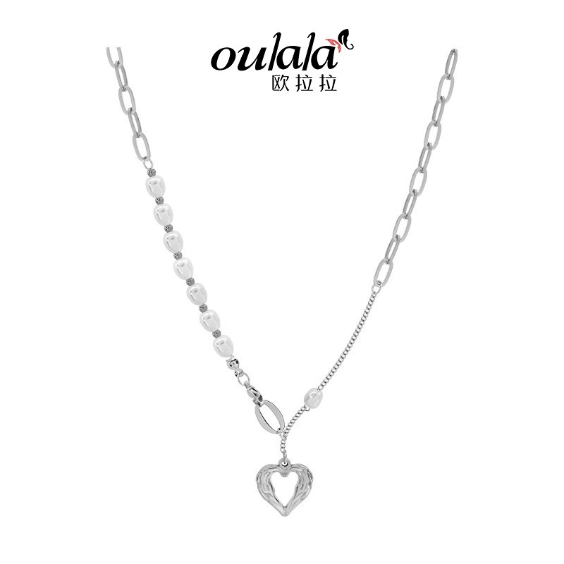 | nameOriginal | Neutral style stacked chain imitation pearl necklace women's love pendant niche design personalized fashion clavicle chain titanium steel jewelry |