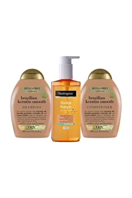 Neutrogena Anti Acne Daily Facial Cleansing Gel 200 ml + OGX Keratin smooth Sulfate-free Shampoo + Care cream