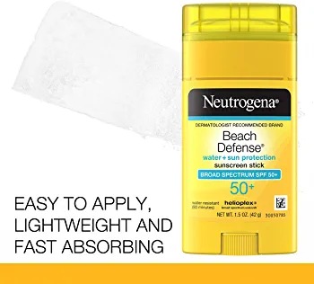 | nameOriginal | Neutrogena Beach Defense Sunscreen Stick with Broad Spectrum SPF 50+, Lightweight Water-Resistant Sunscreen with Oil-Free & PABA-Free Formula, 1.5 Ounce (Pack of 1) |